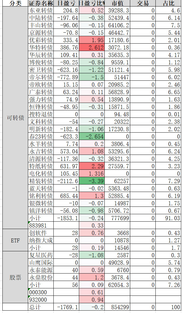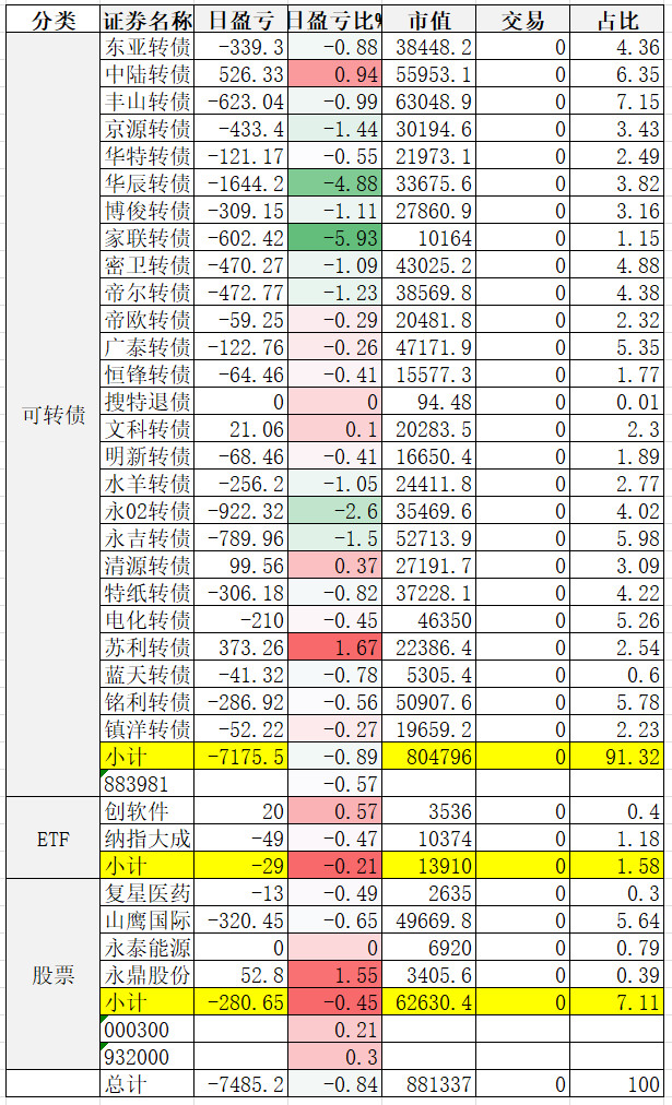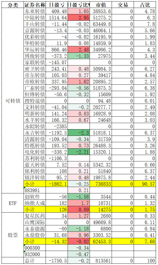 因为组合中买了三支商业航天概念的转债,连续三天是止不住的跌。明天看情况补点仓。