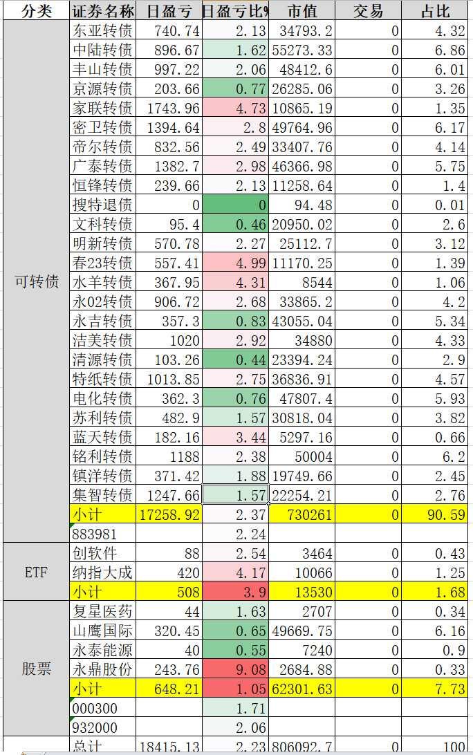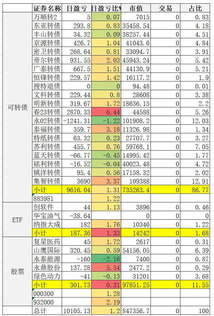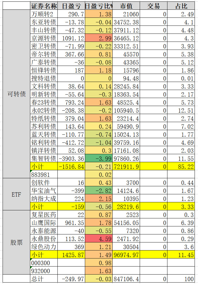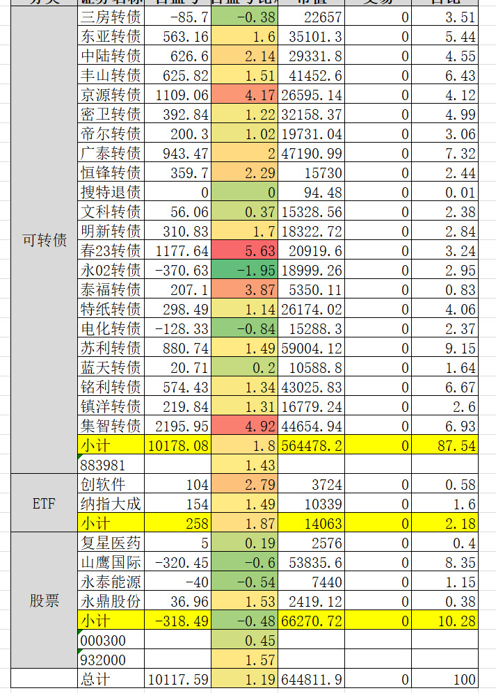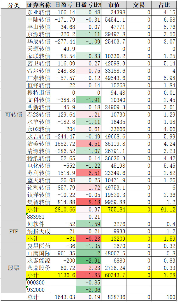 但年前清仓了大部分可转债的仓位,收益数值一般。有机会再补回可转债仓位。