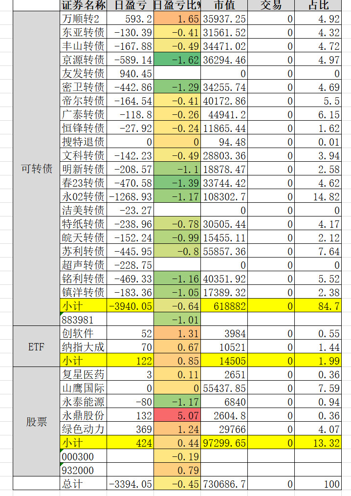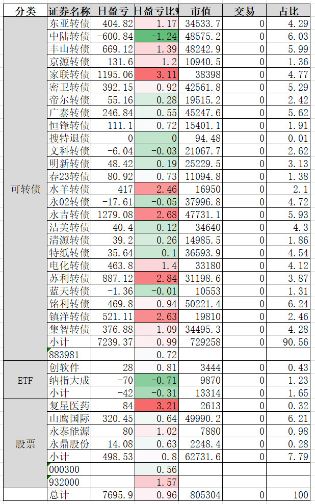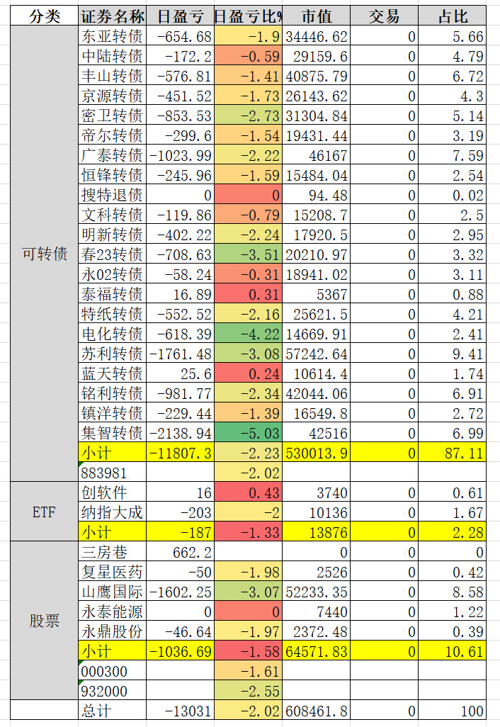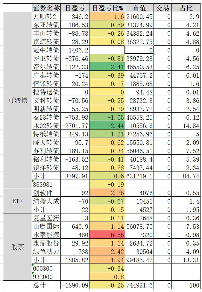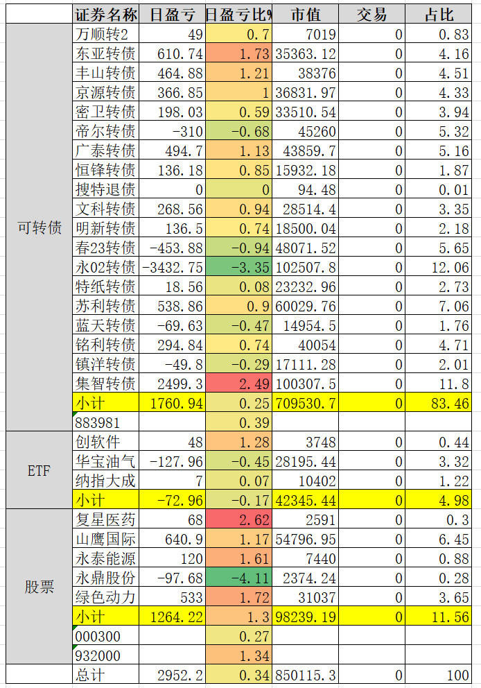 但年前清仓了大部分可转债的仓位,收益数值一般。有机会再补回可转债仓位。