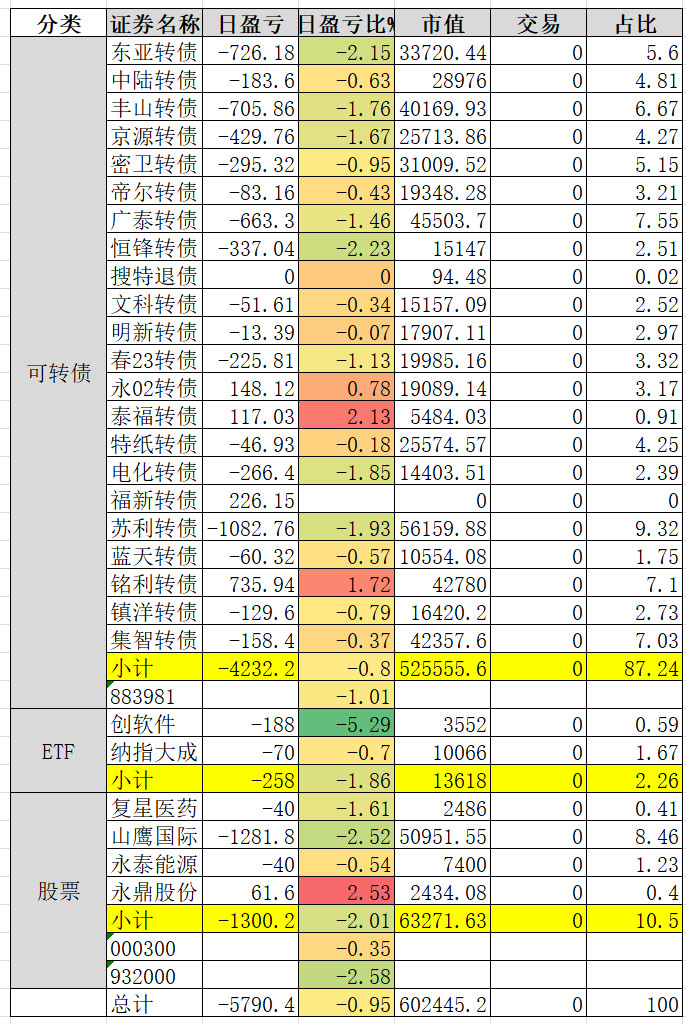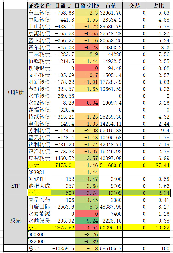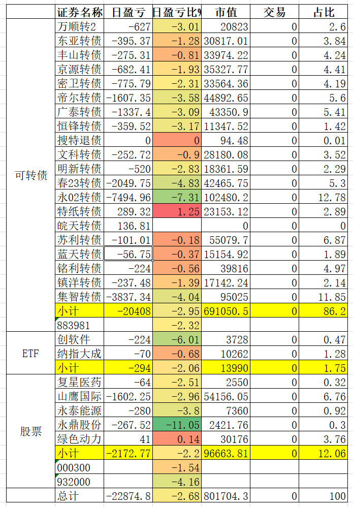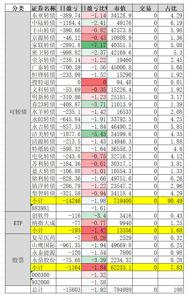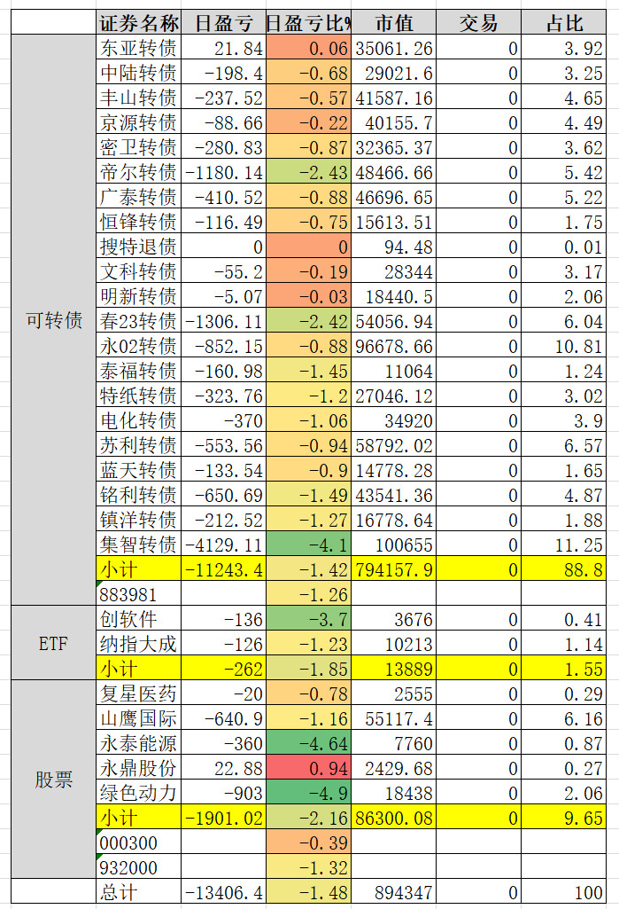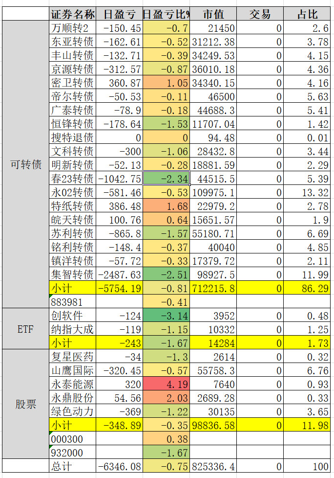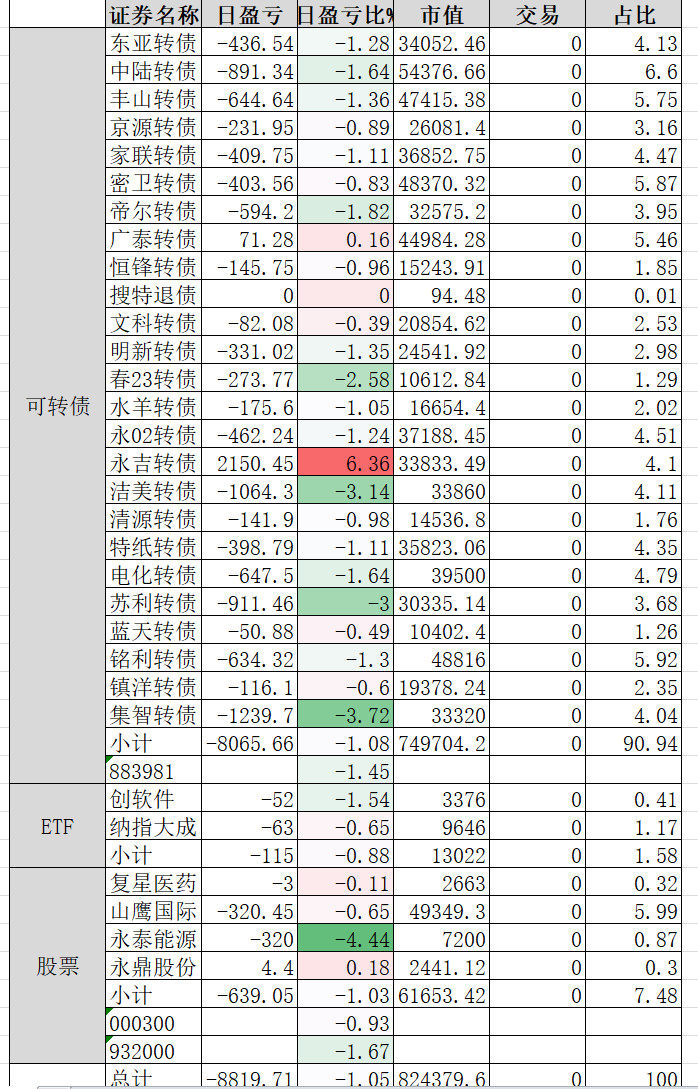因为组合中买了三支商业航天概念的转债,连续三天是止不住的跌。明天看情况补点仓。