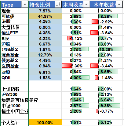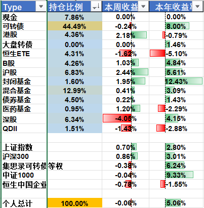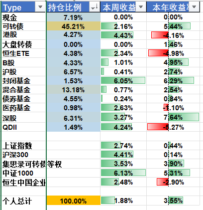 今年仍然以转债为主,辅以港股和银行股;B股和医药股去年比较拉跨,今年可以再关注下,是否有补涨机会;