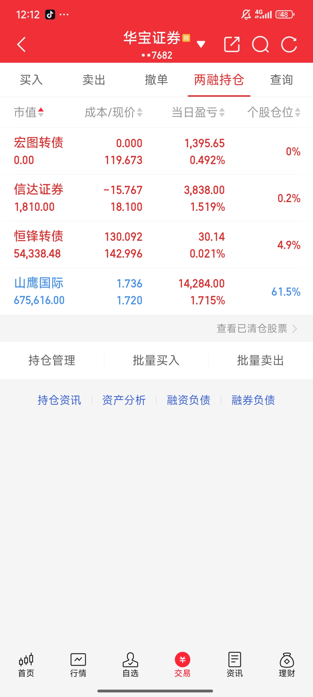 市场行情太火热了,清仓信达证券,宏图转债。减仓恒锋转债,保留一个大饼仓。山鹰今日T出两笔。