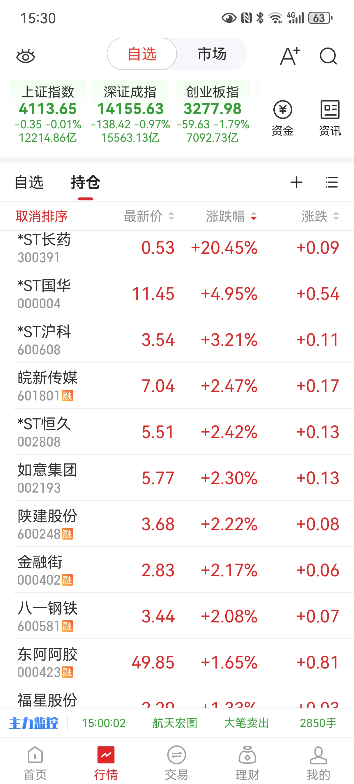 2026年62、63涨停,st精轮、st岩石截图留影纪念!