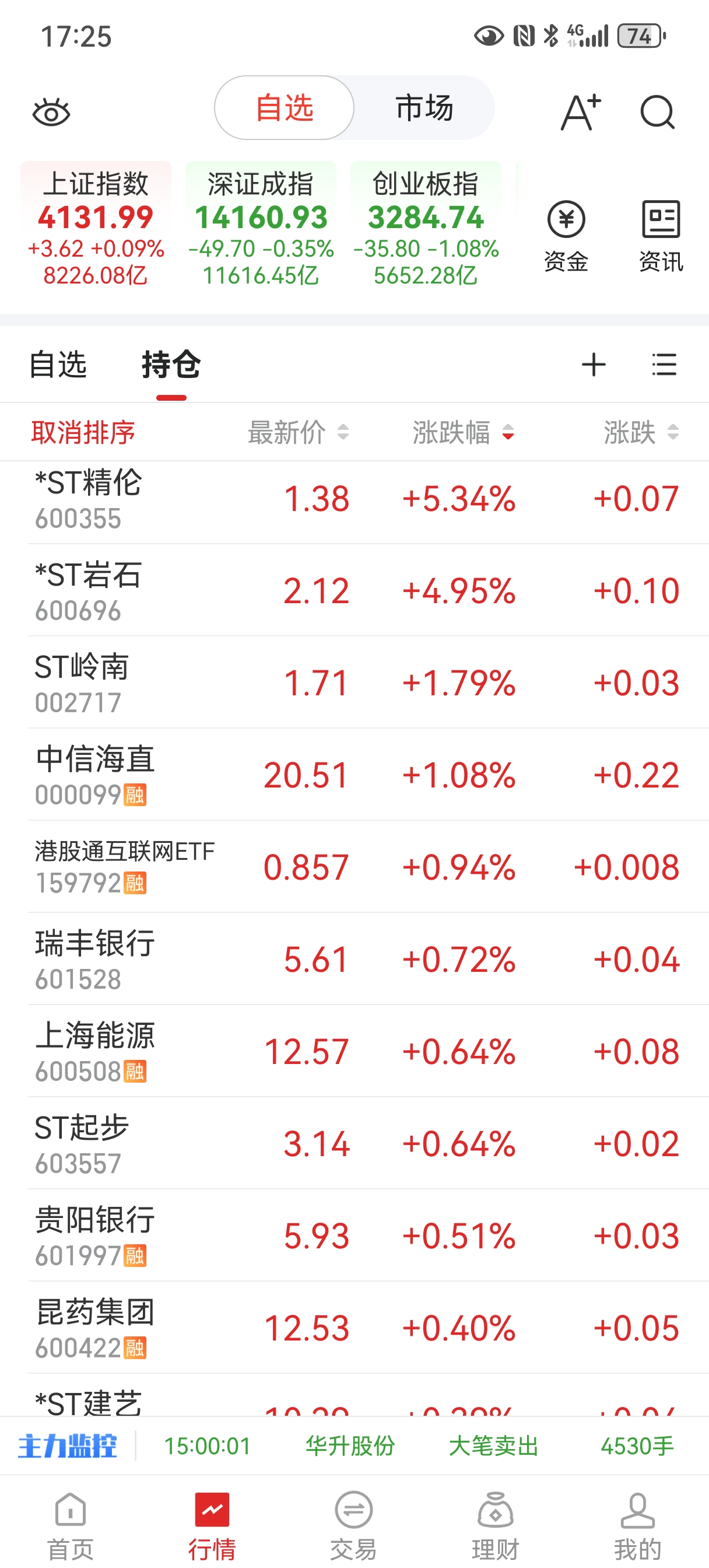 2026年31、32、33、34涨停,st长药、st云网、st国华、st岩石截图留影纪念!