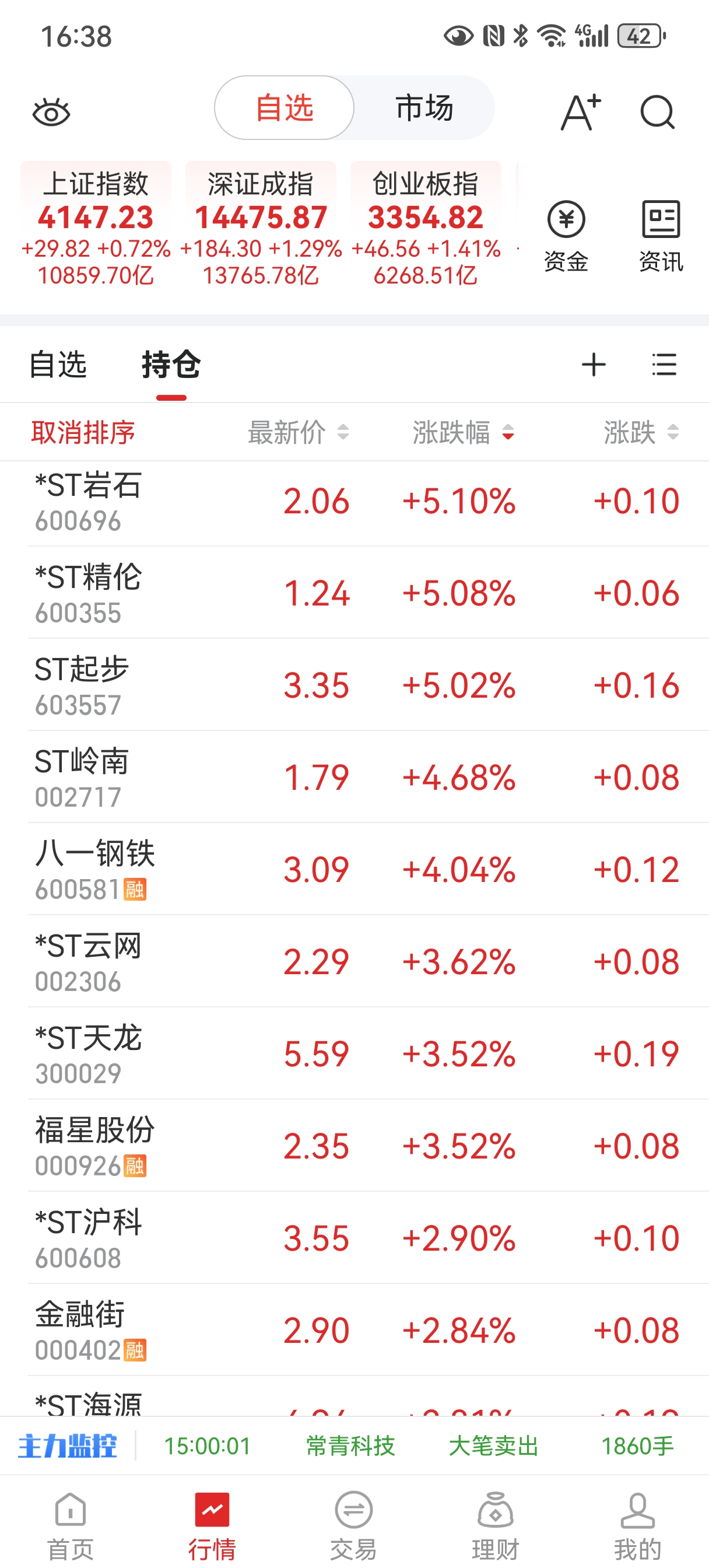 2026年第5、6、7、8个涨停,st星农、st高斯、st沪科、st阳光截图留影纪念!