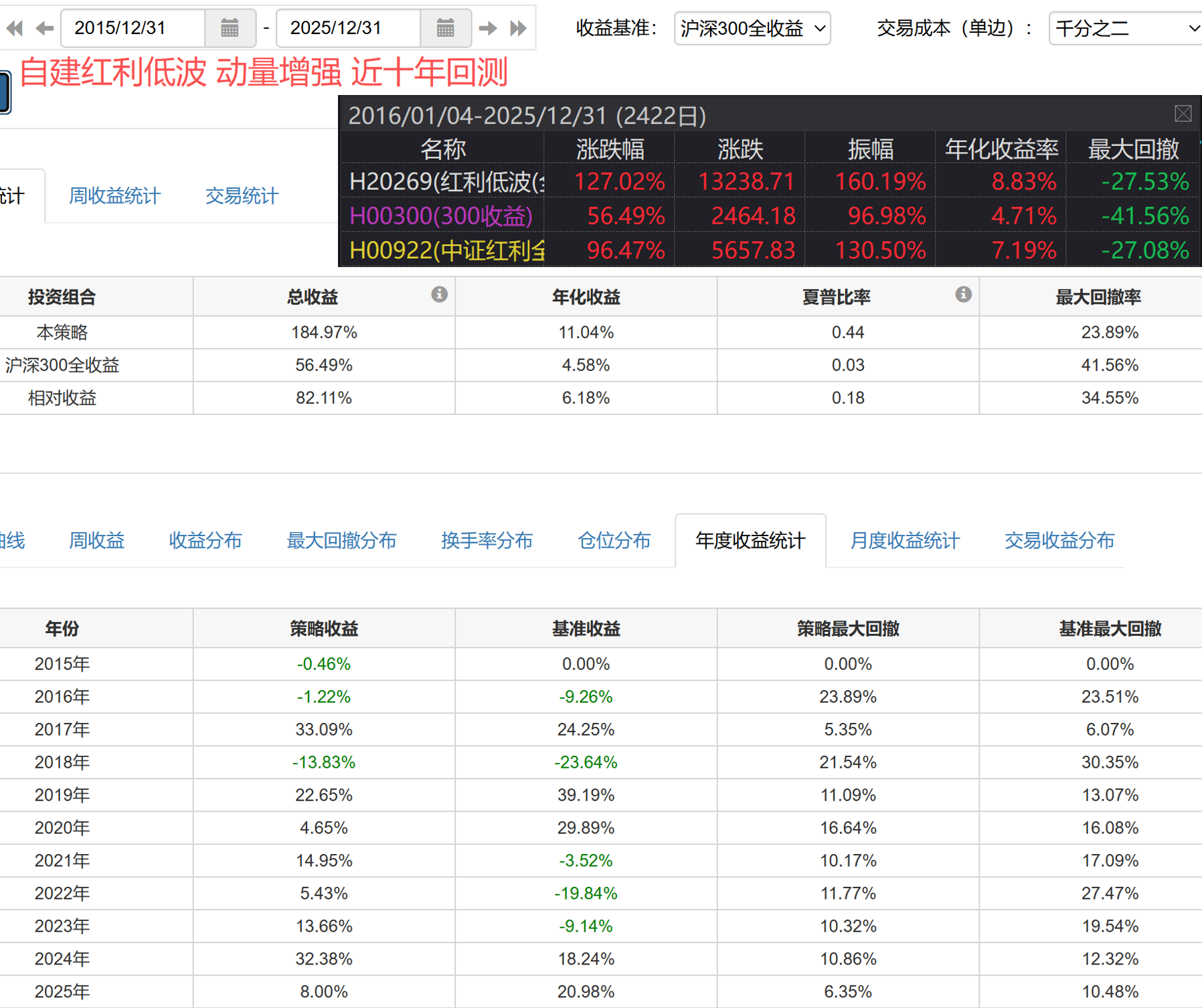 策略4:自建红利低波动量增强: