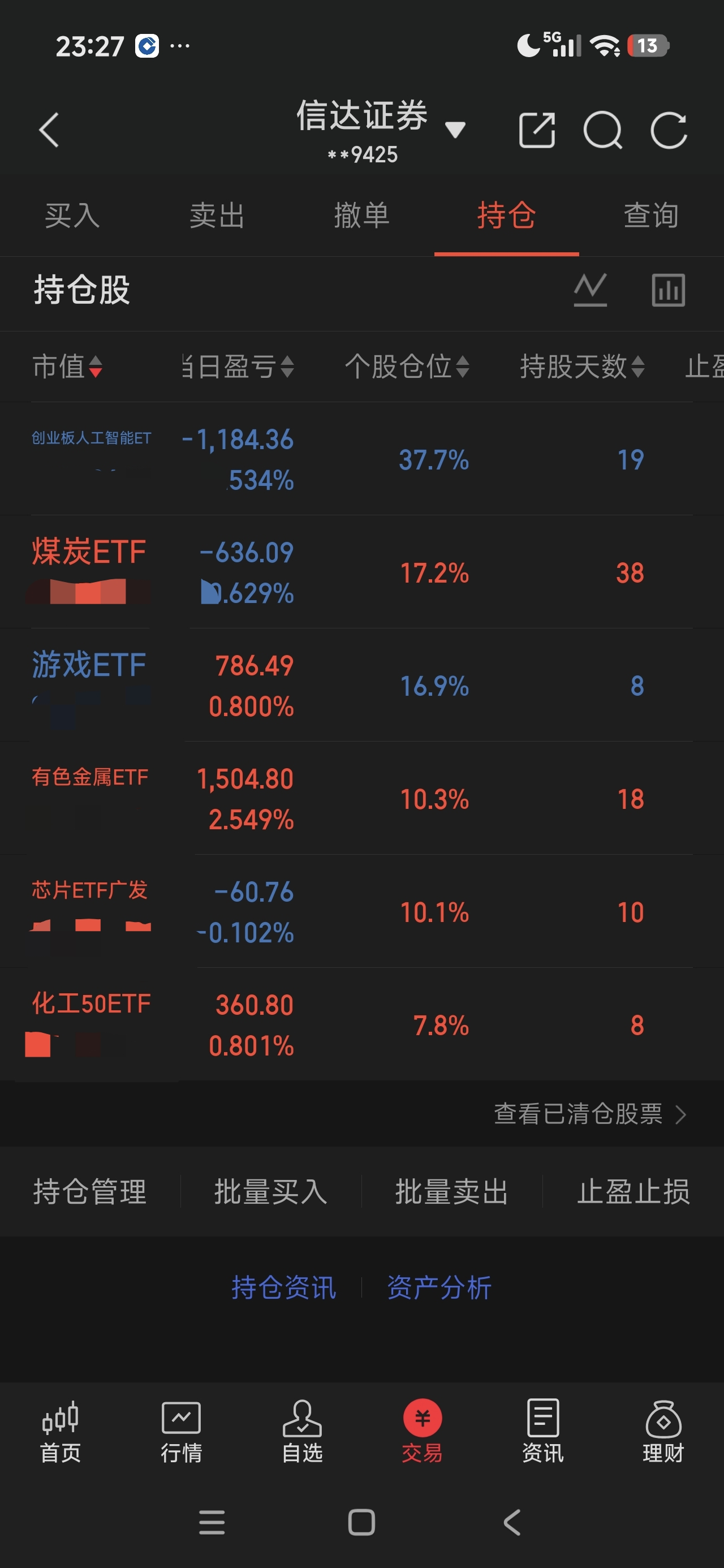 今天虽然赚钱但是操作做的太差了,煤炭低走开盘卖了一半,涨到2个点又卖了一半,最后涨到接近5个点,人工智能和芯片高开低走,格局了一下,从2个多点跌到微红,关键这两个占了绝大部分仓位,利润回吐一大半,还得学习啊,最近涨价股涨得好啊