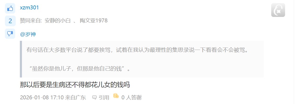 都是成年人。父母的钱理论上只属于他们两和孩子还真没关系。人作为独立个体自由意志不受太多(法律除外)约束是核心根本。