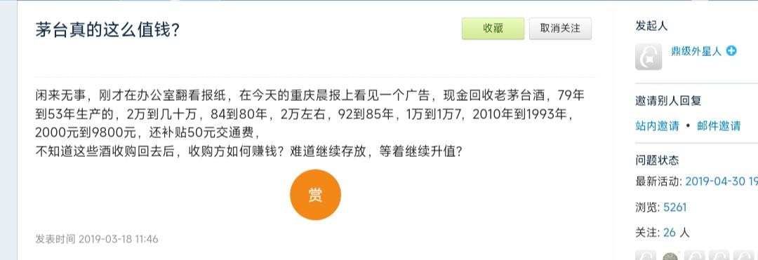 你说我存了瓶20年茅台,价值1万元,然后你卖给谁去???
