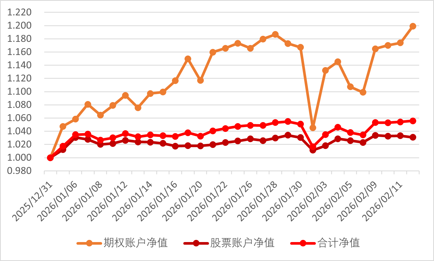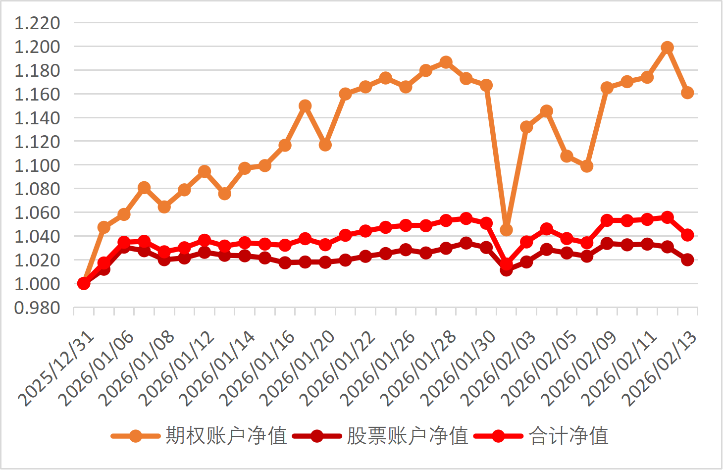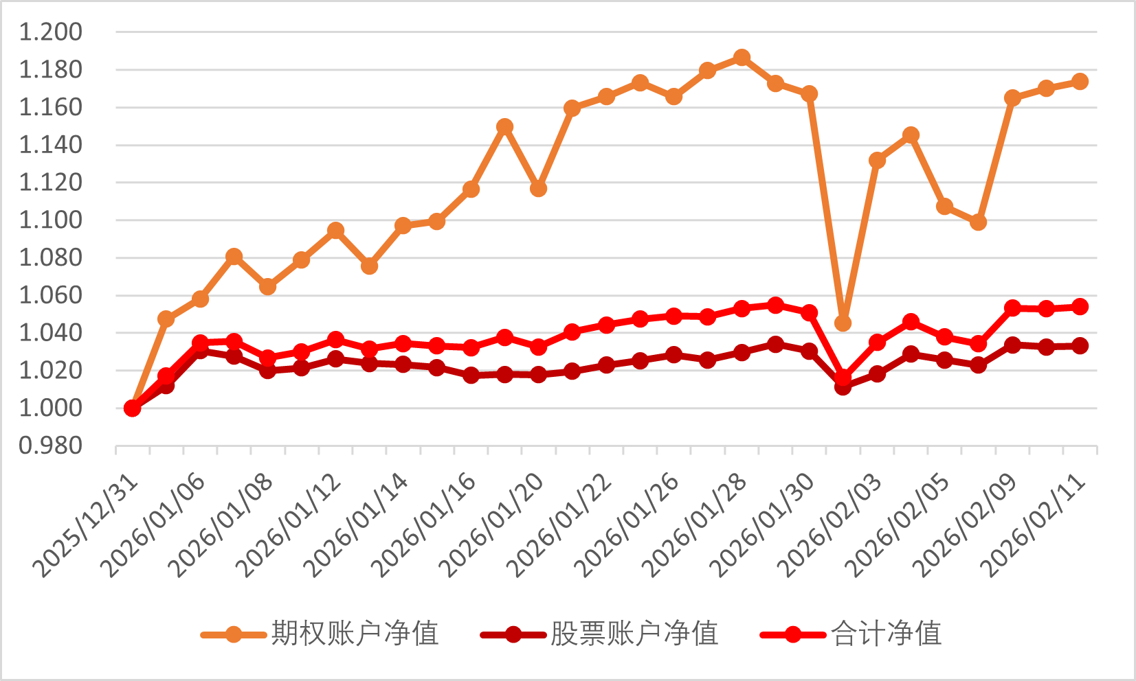 2026年2月3日期权账户净值为1.132(2025年12月31日净值为1)