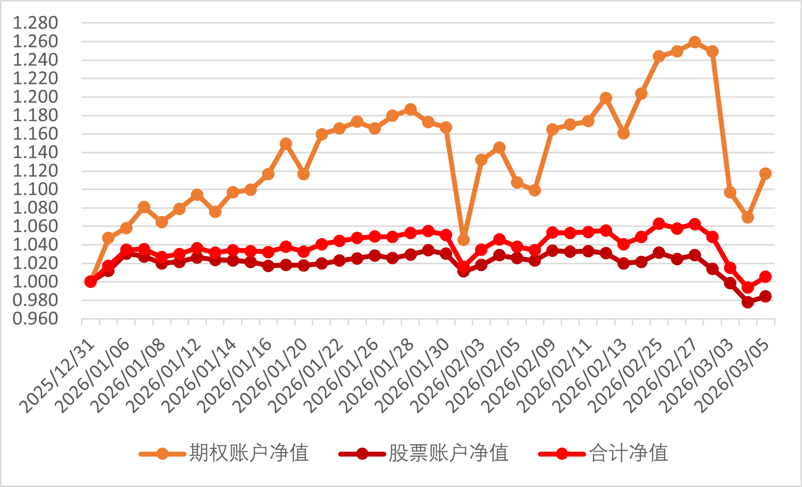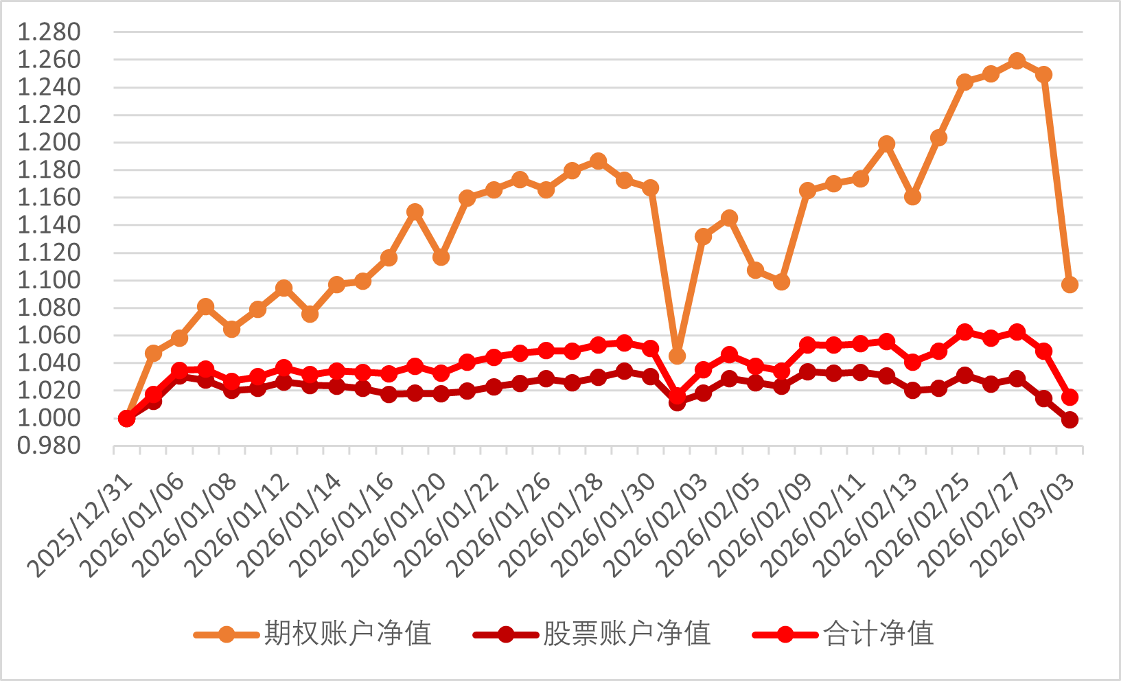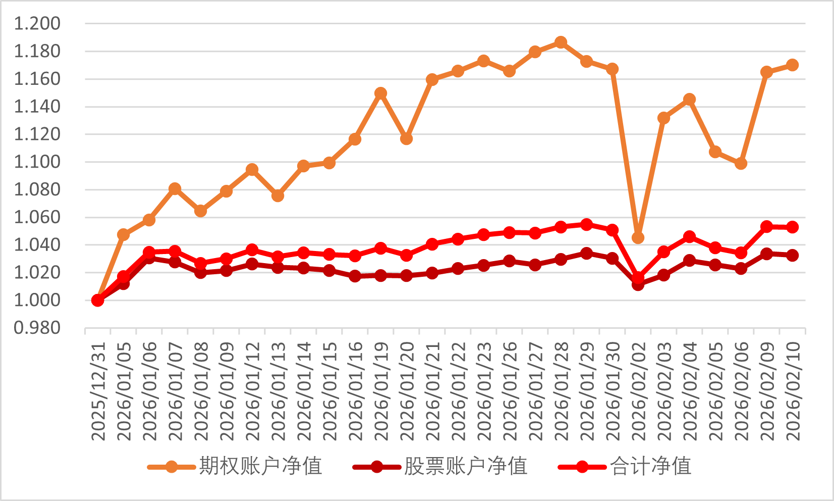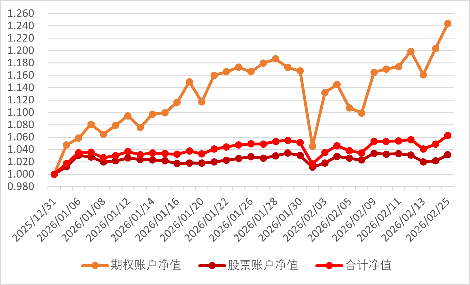 2026年2月3日期权账户净值为1.132(2025年12月31日净值为1)