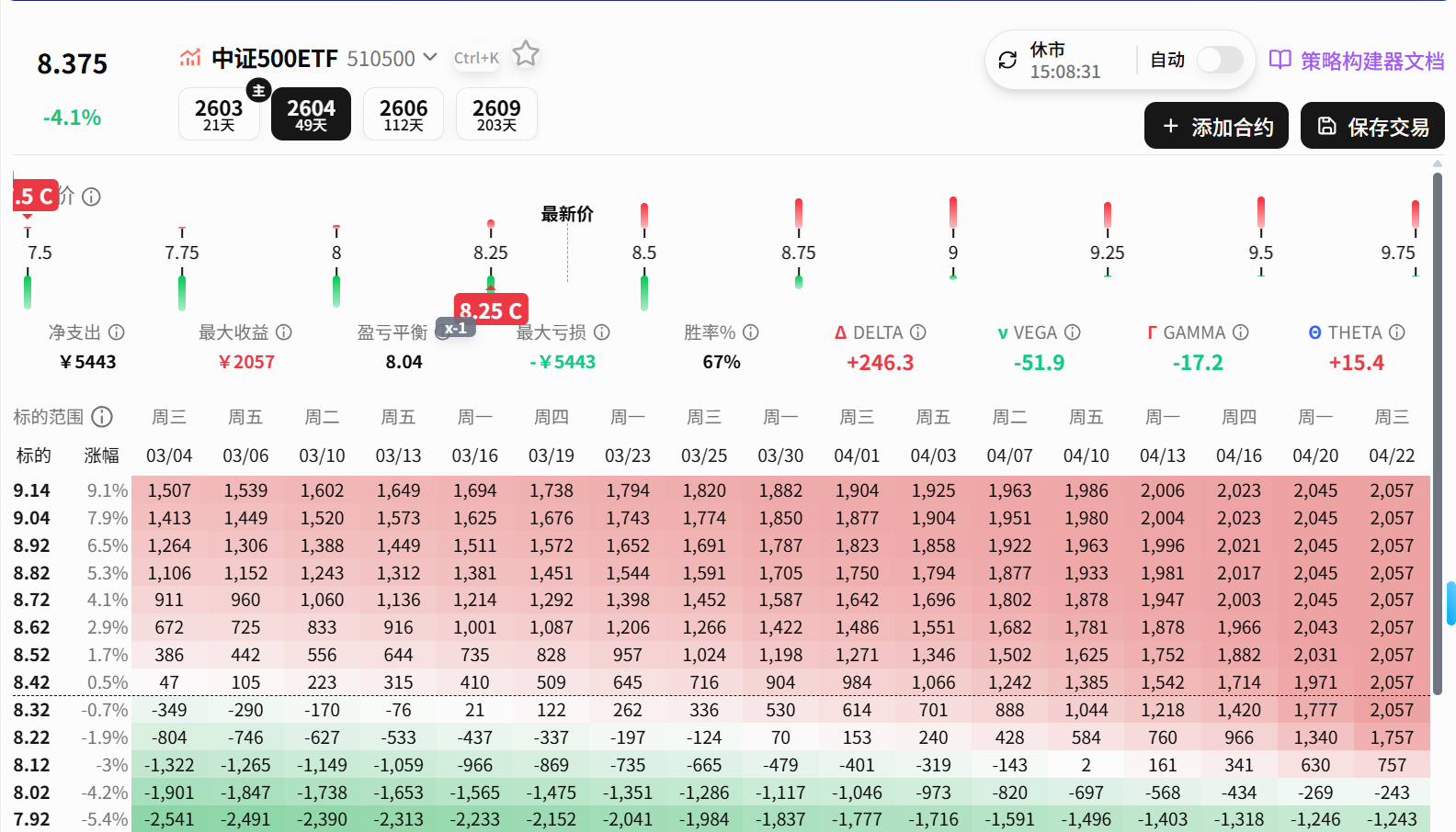 今日操作:买回中证500ETF期权牛差2对。