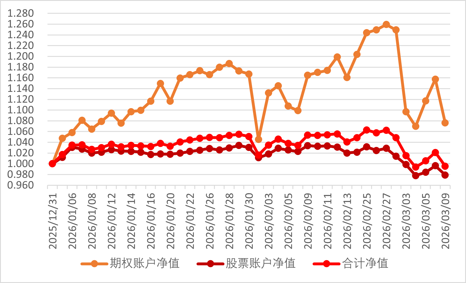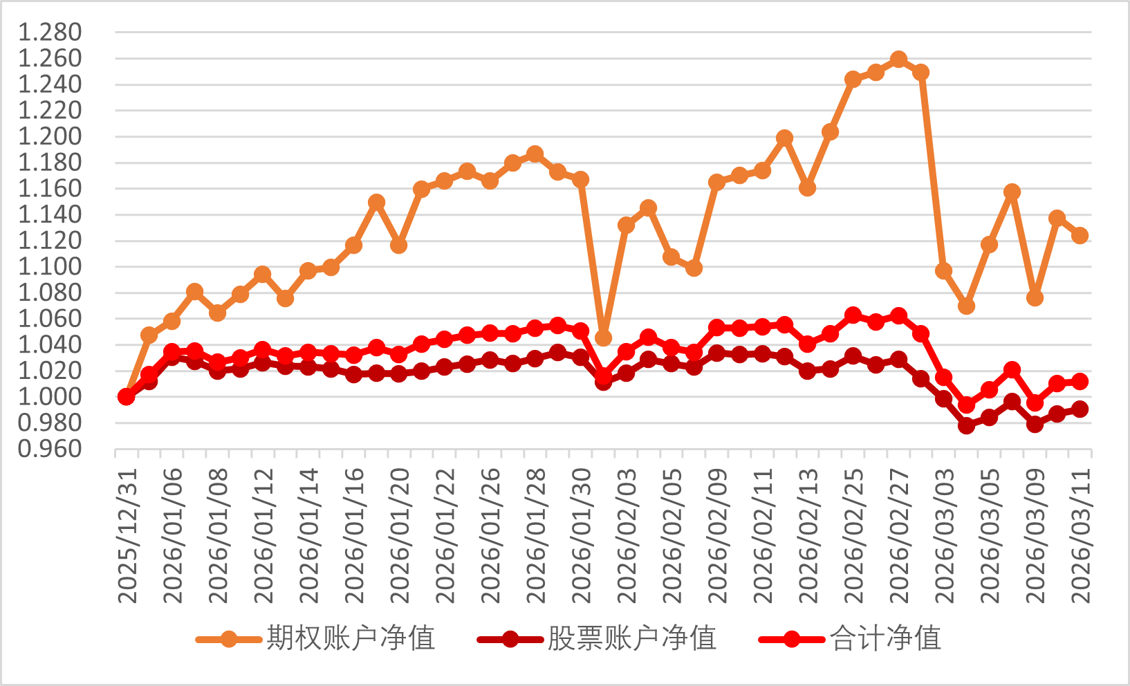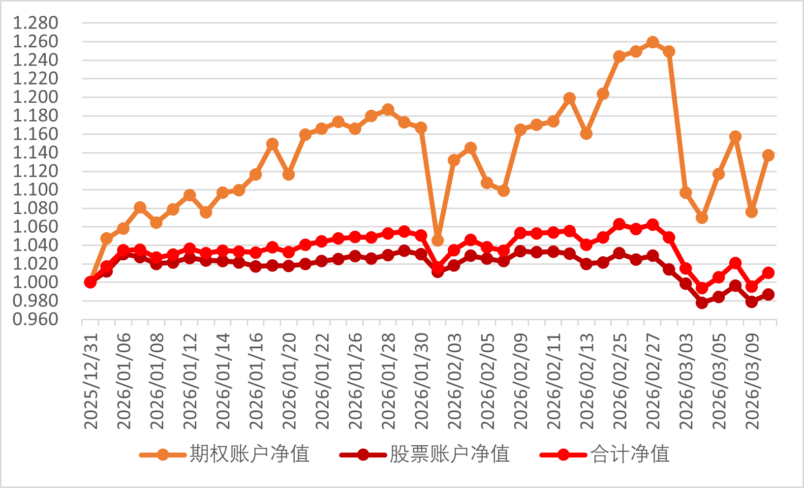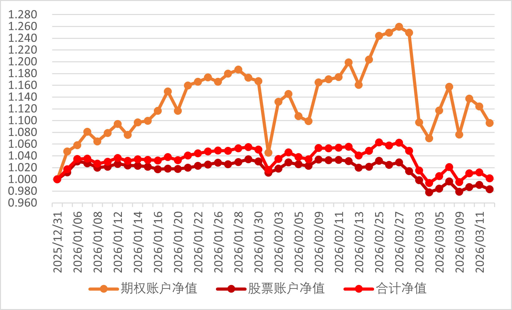 2026年3月12日期权账户净值为1.096,继续回撤。
