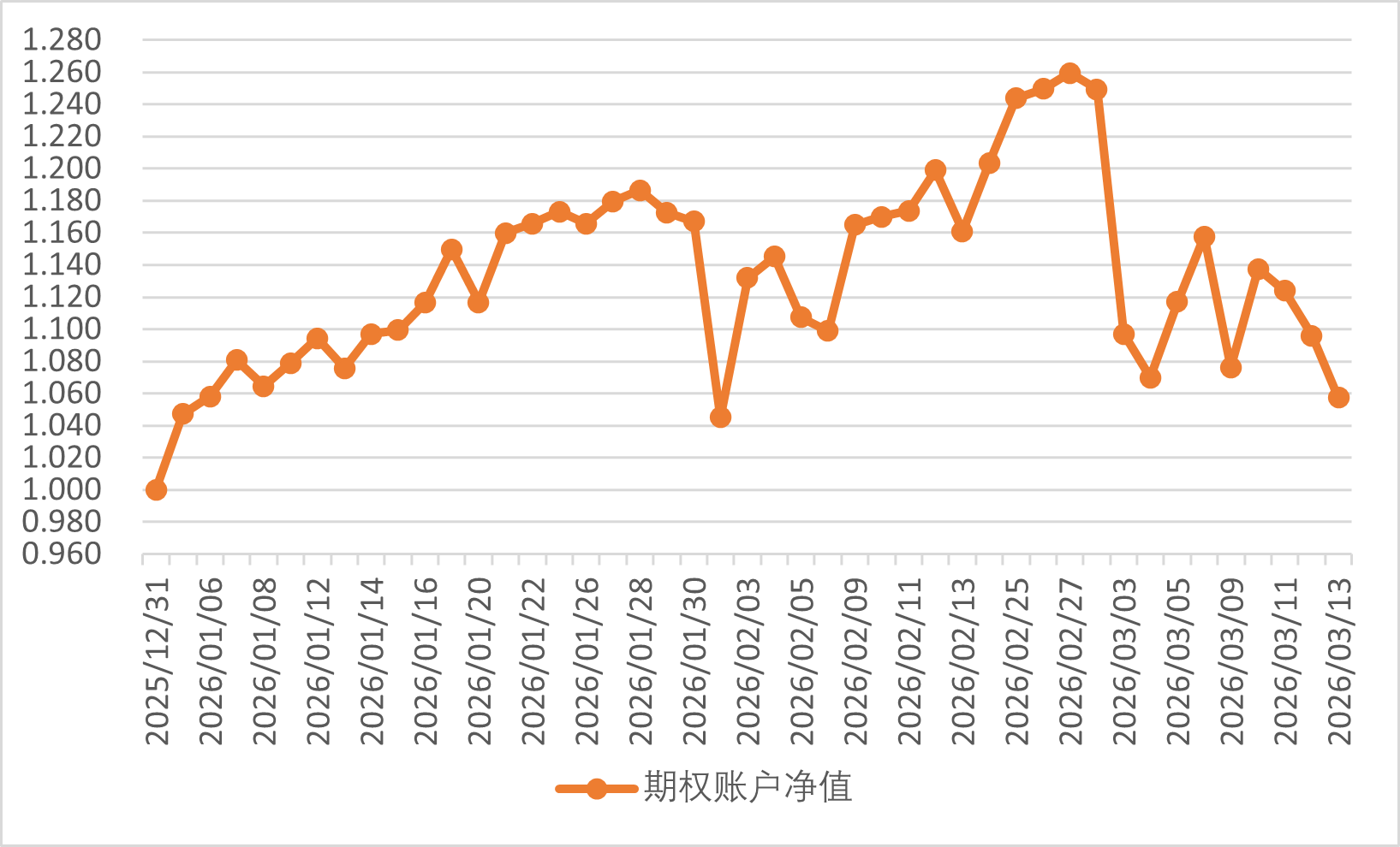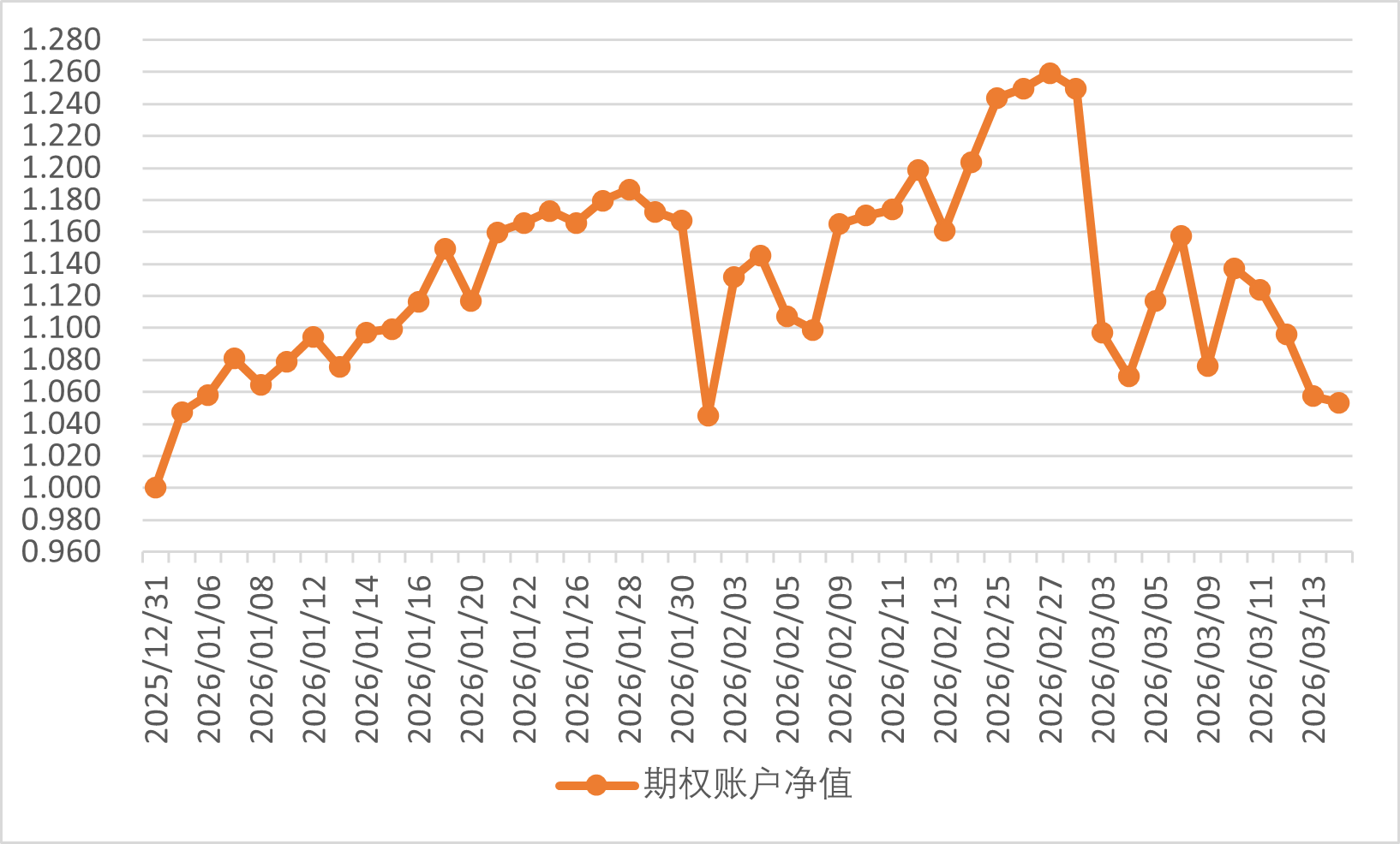 2026年3月13日期权账户净值为1.057,继续回撤。