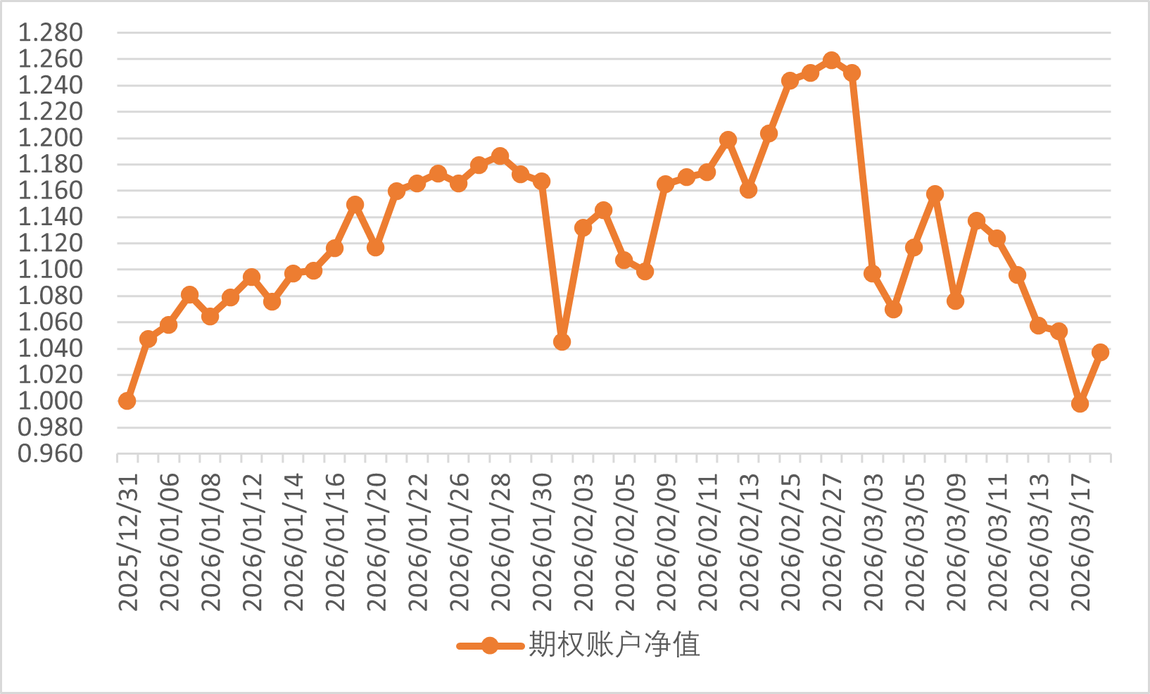 2026年3月18日期权账户净值为1.037,稍微回升。