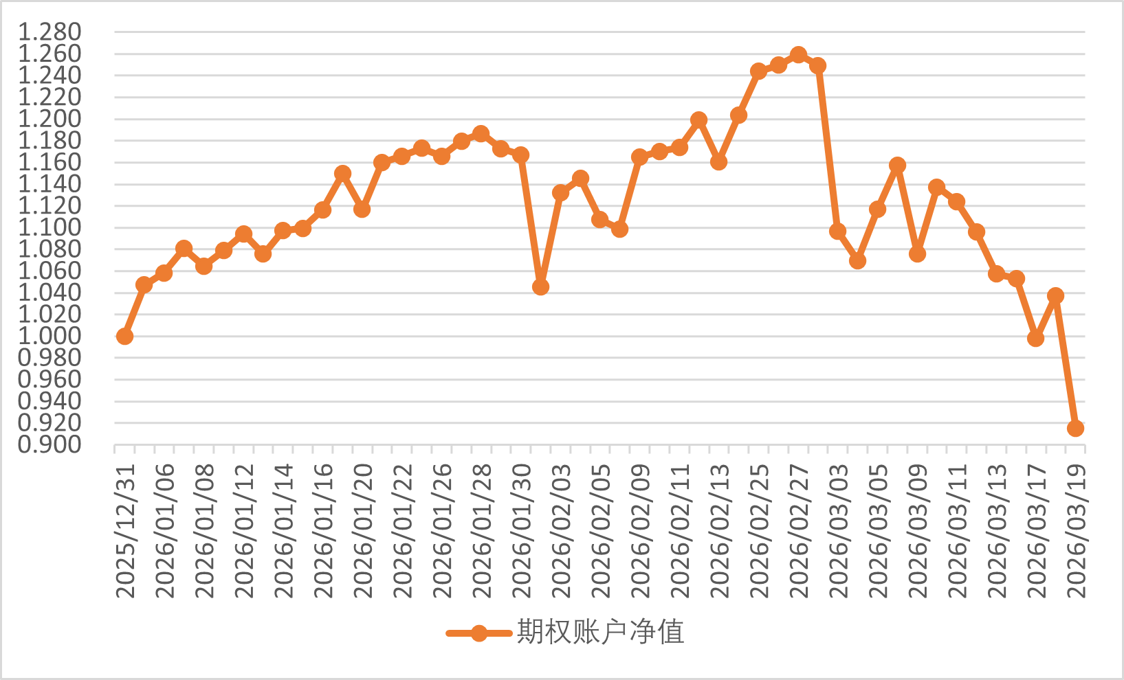 2026年3月19日期权账户净值为0.915,大幅度回撤。