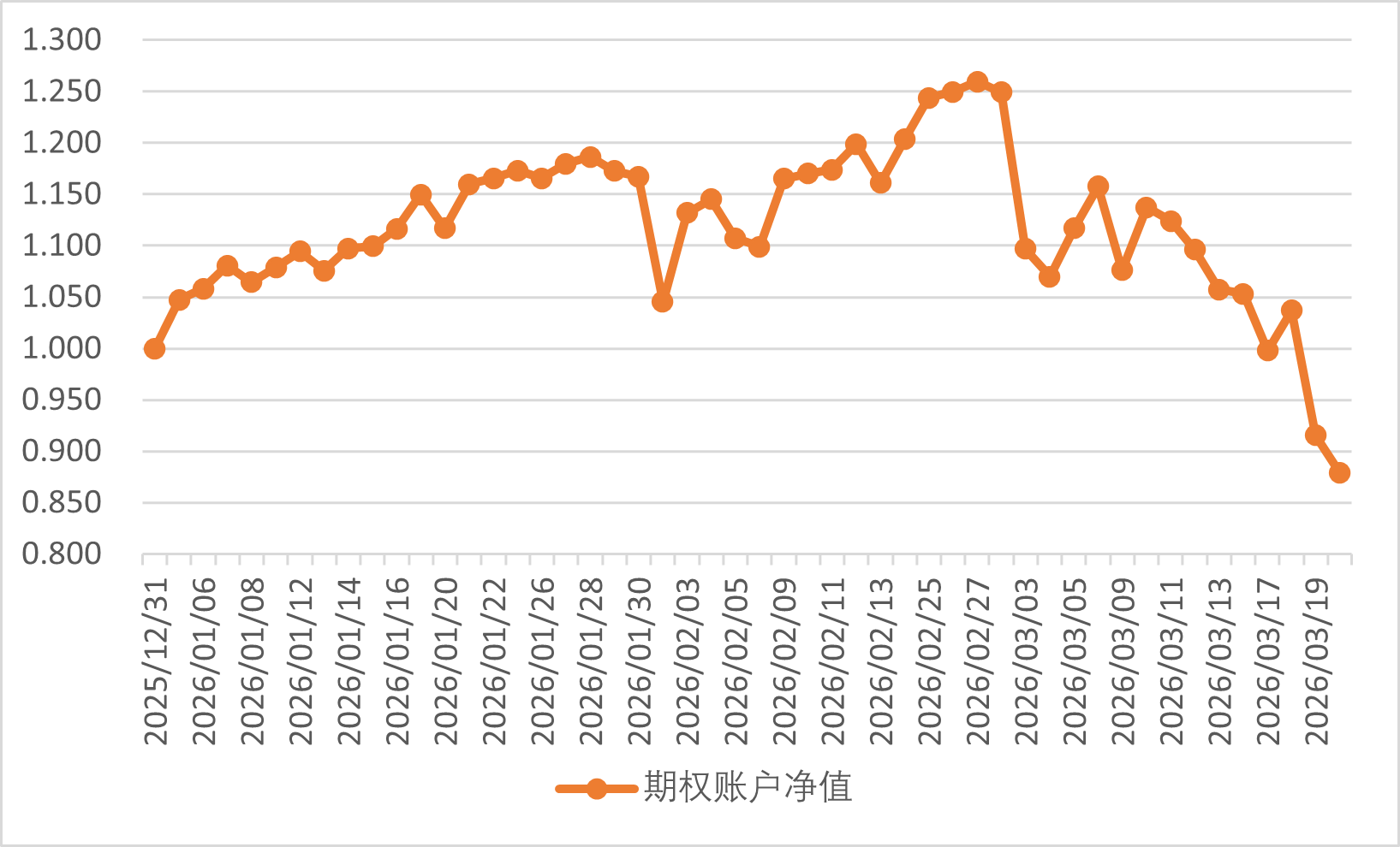 2026年3月19日期权账户净值为0.879,再次大幅度回撤。