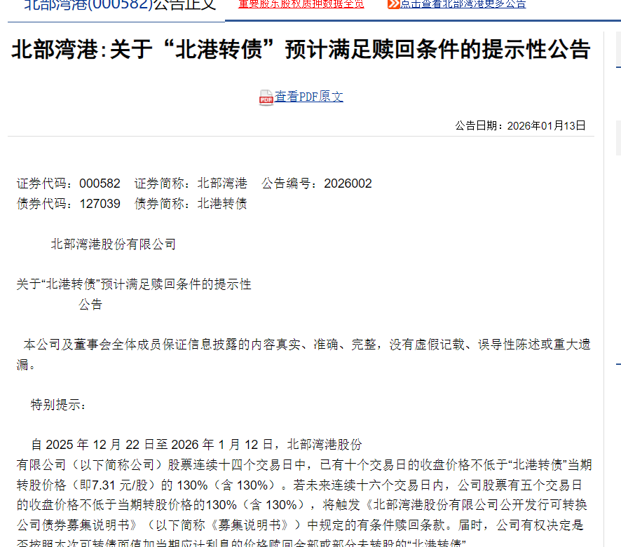 为啥要强赎?公司近几年的开支还在增加,说不定还要多借,低息债用起来不香吗?北部湾港的业绩还不错,个人觉得公司不会担心以后不触发强赎价的。公司强赎回不是还钱,而是利用强赎回逼可转债转股。