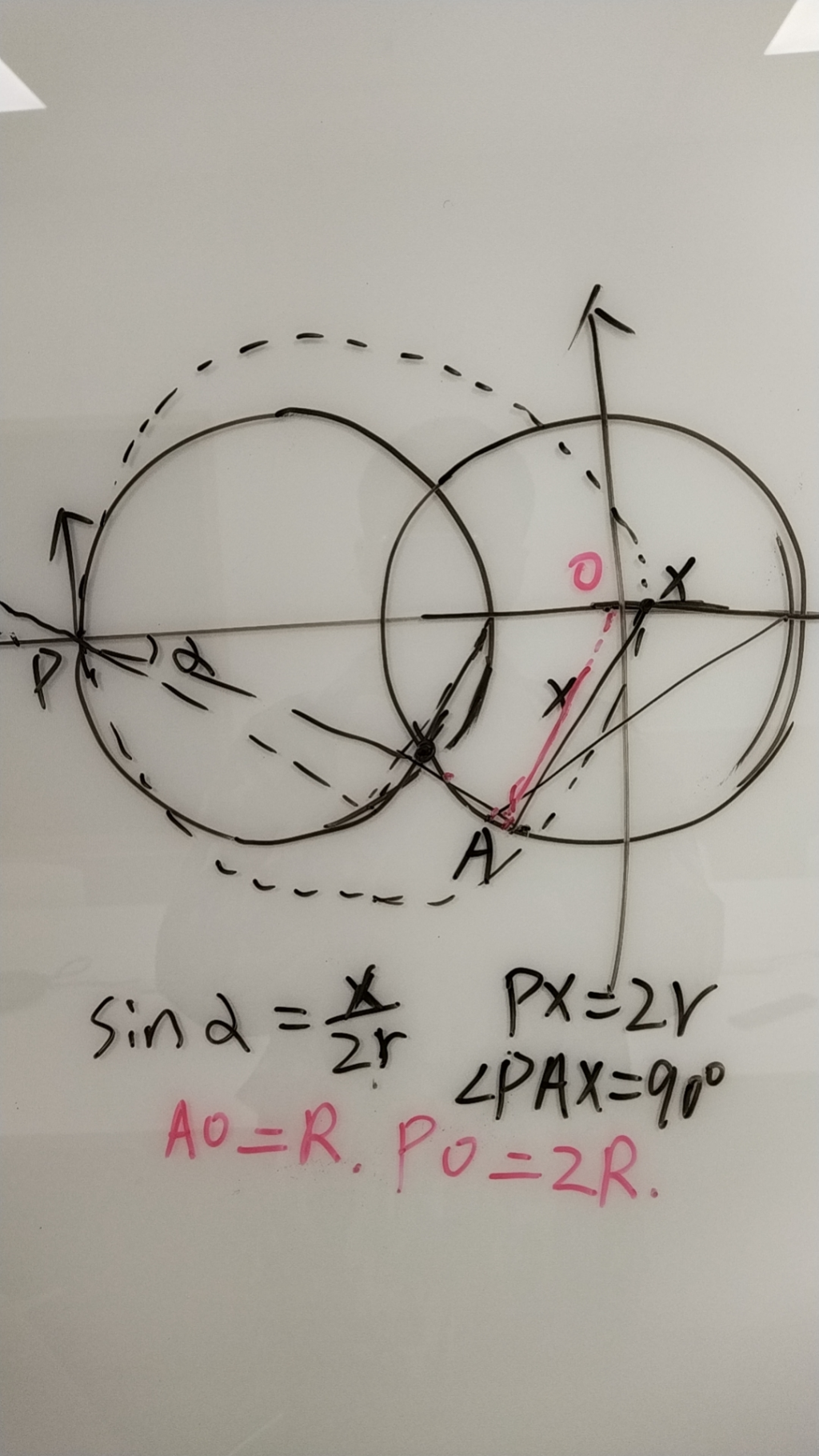 但A点也在1/4圆上,对于1/4圆所在的圆,只有PA⊥OA时∠APX=∠APO最大,这是运动的角度=180+2∠APX