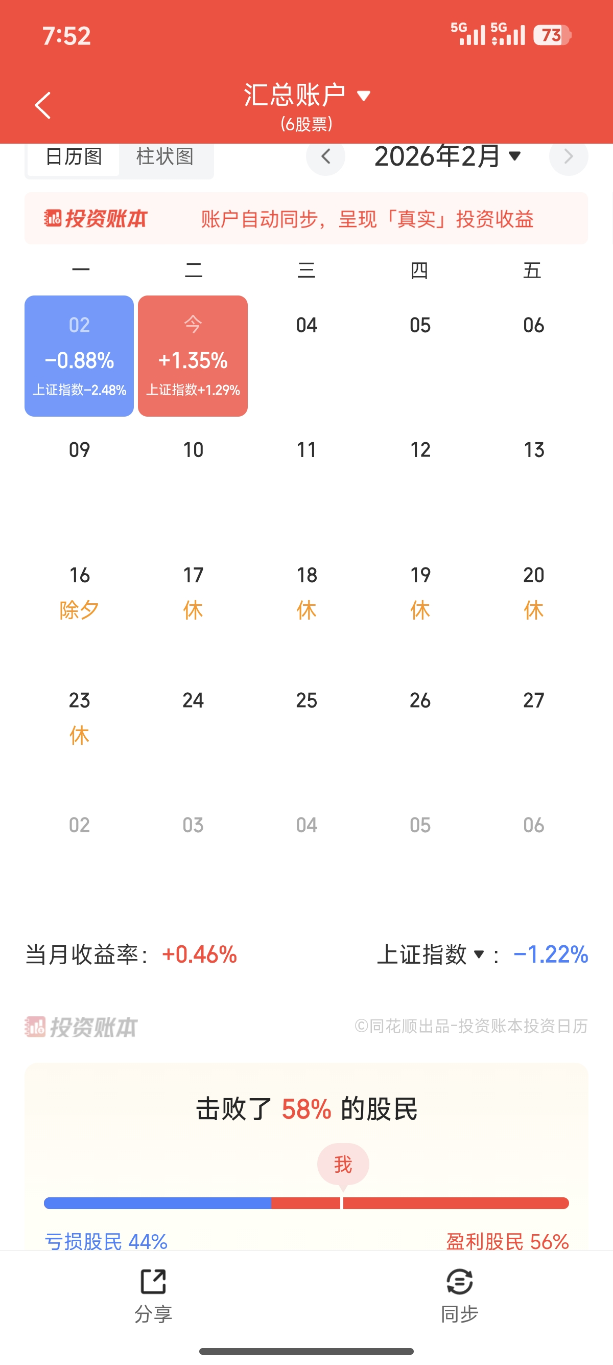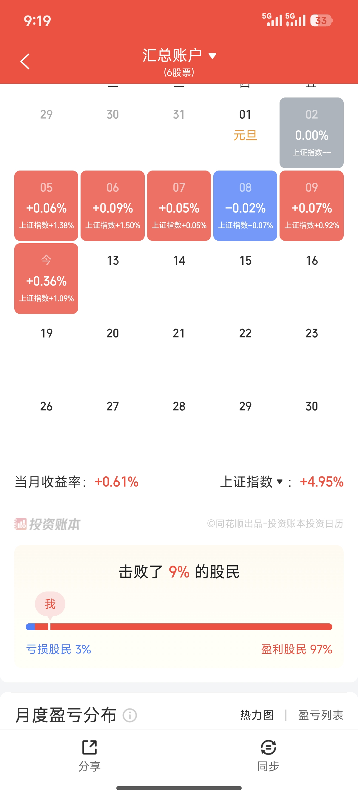 你这收益有点惨烈,我以为我节后赚五六个点已经算很惨的了