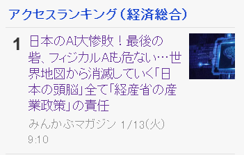 不过讽刺的是今天雅虎日本财经综合访问量最对的新闻是“日本的人工智能灾难! 最后的堡垒,物理AI也很危险……”可见股市和实体经济不能说是正相关,只能说是毫无关系。