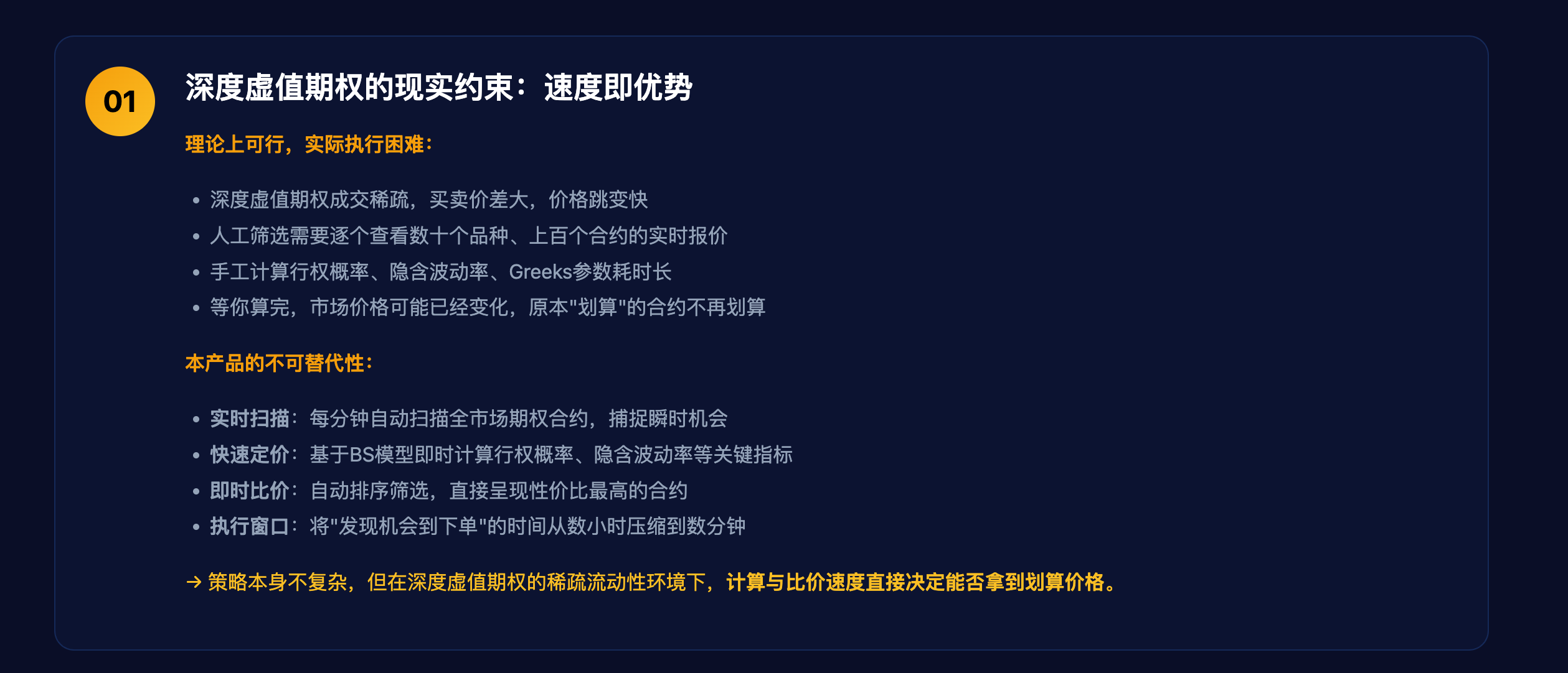 核心是把自己平时用的卖深度虚值的期权策略的逻辑、风控和执行流程工具化,目前已经跑通,在小规模实盘中使用,功能还在持续迭代中,谈不上成熟,更不是成品。