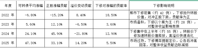 我个人有个不成熟的思考:可转债的年度平均涨幅,或许可以拆解为 中证 2000 涨幅 × 对应系数 + 转股价下修的收益贡献率。而转股价下修带来的额外收益,正是支撑可转债轮动策略的核心逻辑,也是其长期跑赢沪深 300 的关键所在。基于这个逻辑,我也在尝试搭建一套围绕可转债轮动的投资框架,用来参与可转债市场的投资。