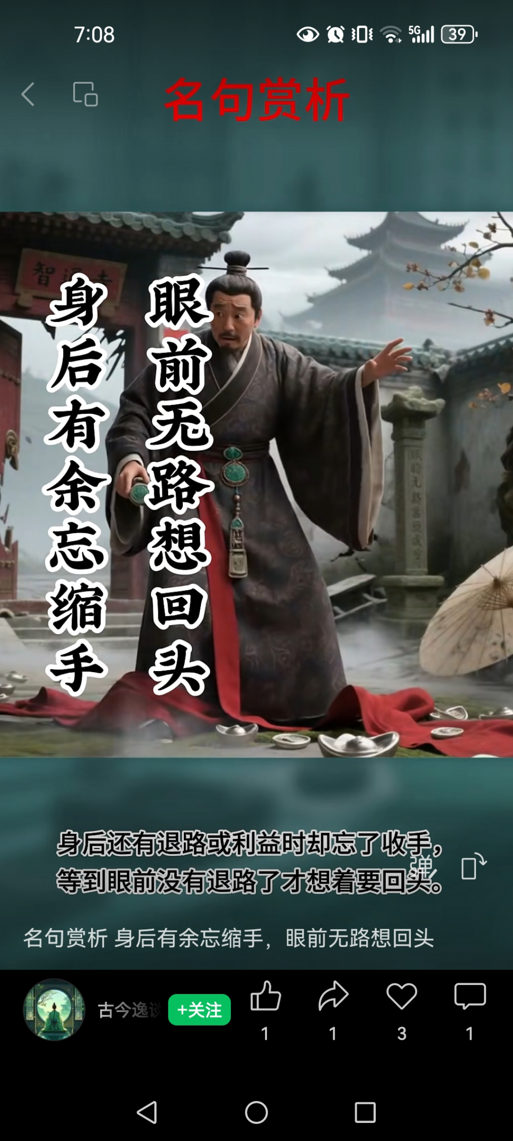 身后有余忘缩手,眼前无路想回头。