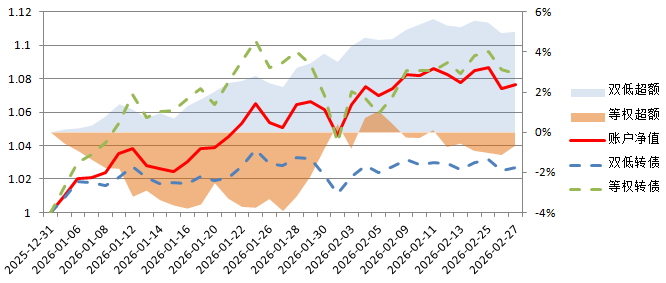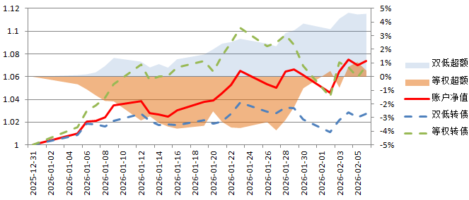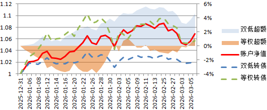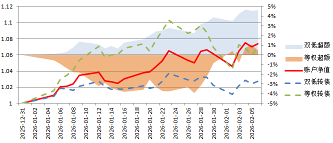 2026年,账户累计涨幅6.99%,显著跑赢双低转债指数,并在本周反超等权转债指数。