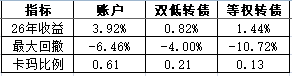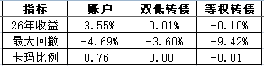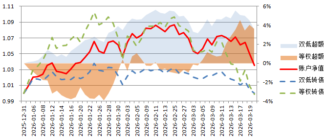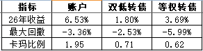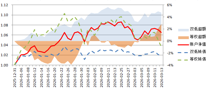 账户2026年累计涨幅6.54%,本周涨幅3.40%;万得可转债双低指数2026年累计涨幅3.75%,本周涨幅1.97%,年内累计超额2.79%。