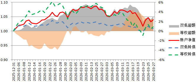 2026年,账户累计涨幅6.99%,显著跑赢双低转债指数,并在本周反超等权转债指数。