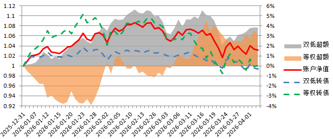 2026年,账户累计涨幅6.99%,显著跑赢双低转债指数,并在本周反超等权转债指数。