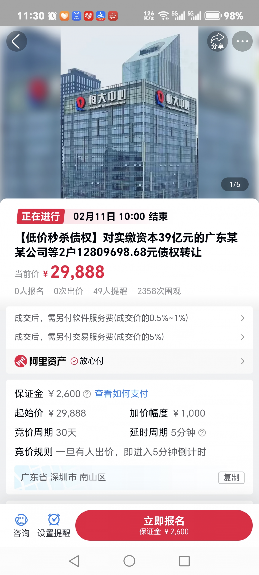 刚看到一个拍卖信息,恒大的债务1200多万,拍出来29888,值得看看吗?
