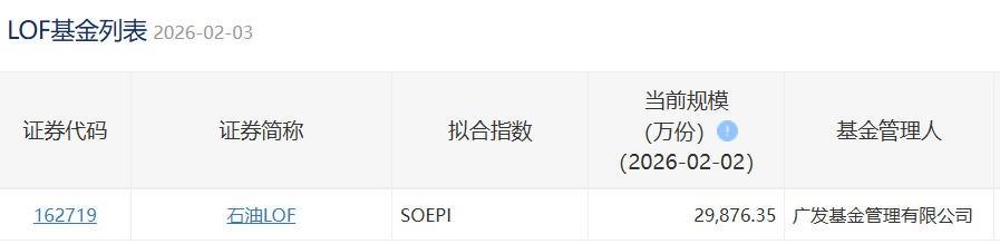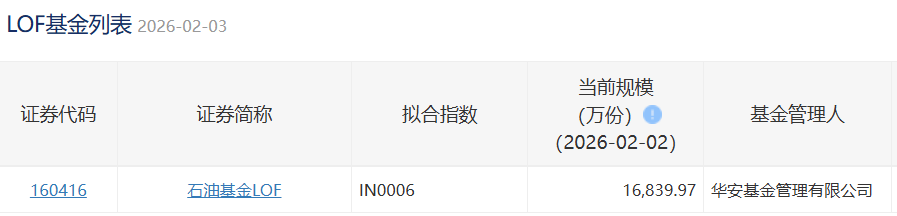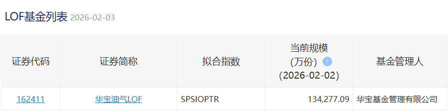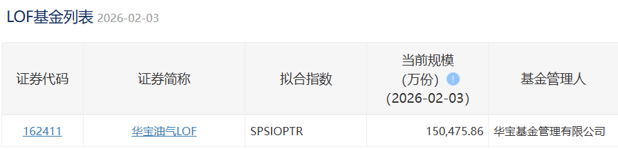 2026年2月3日,华宝油气LOF场内规模150,475.86万份,新增16,198.77万份,相当于21.09万辆拖拉机申购。