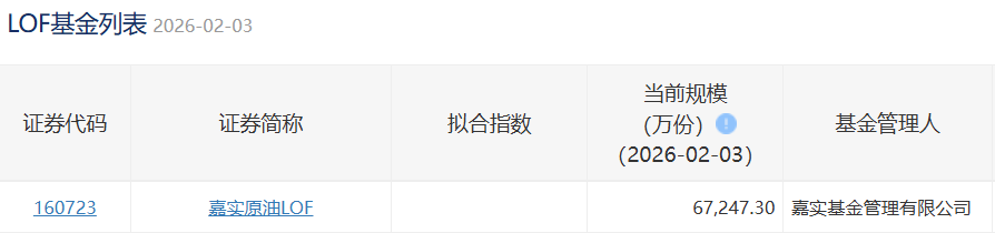 2026年2月3日,嘉实原油LOF场内规模67,247.30万份,新增9,869.88万份,相当于24.19万辆拖拉机申购。