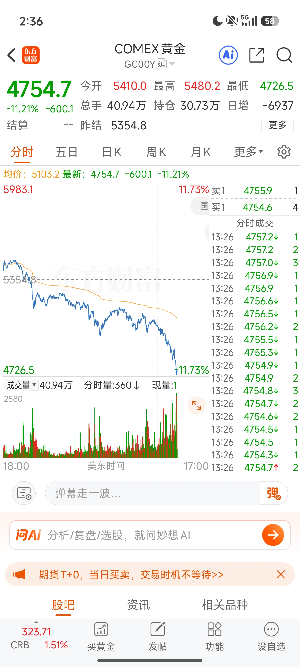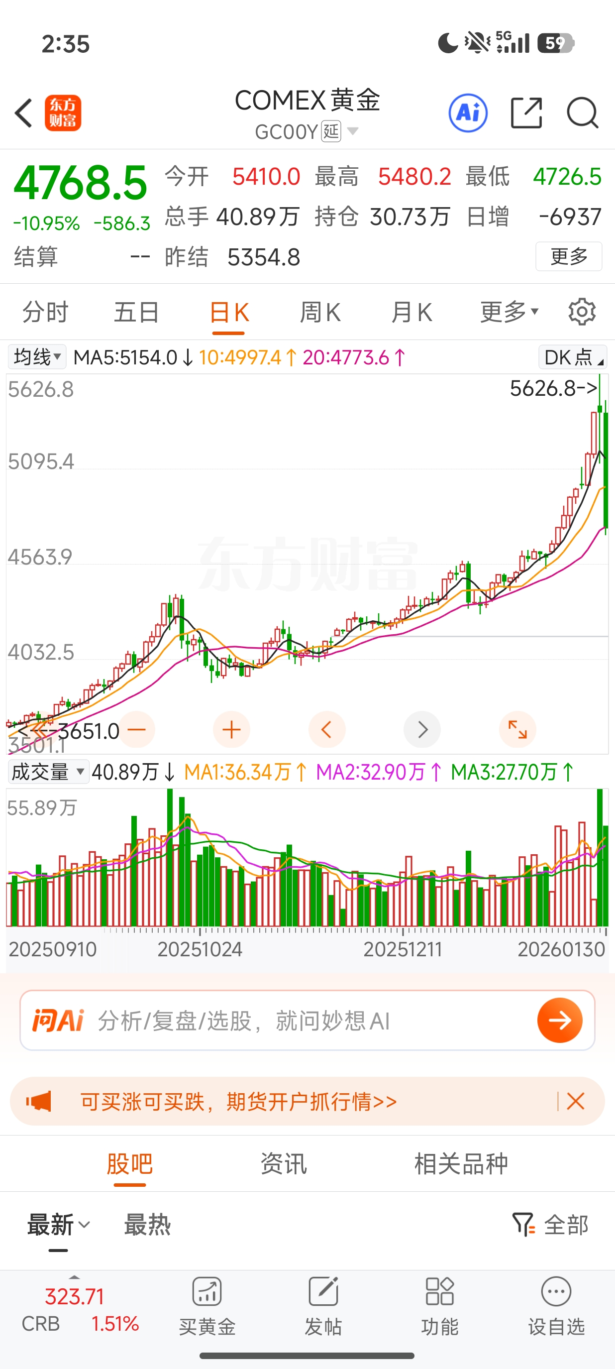 天大的讽刺,极强的侮辱,巨大的伤害,半月来一直做空白银竟然赔钱出局.................铺天盖地的“白银需求大增,市场极度短缺,全球企业和民众疯抢(还有很多排队抢白银的视频),价格上方是星辰大海”没有信,2602合约从15000涨到28000仍坚信主要成份是炒作,2603合约从23000涨到32000,还是坚信必然暴跌,始终用期权做空,然后在29日夜盘涨势如虹时,看着帐面浮亏几何级数增加,终于在2603合约涨幅达到13%时手起刀落,割肉离场...........清空全部空单.............................