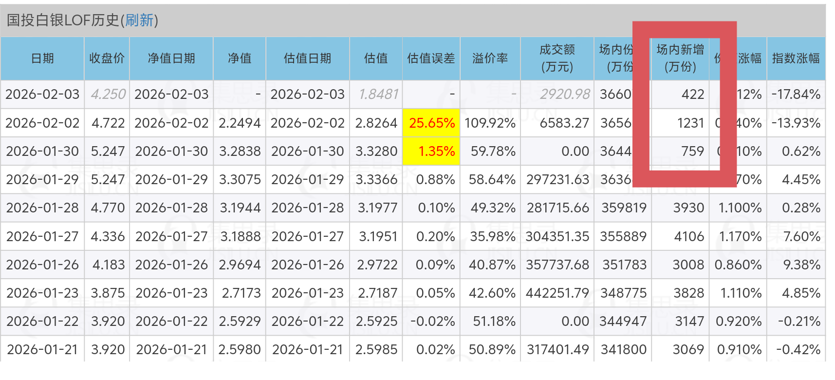 国投白银LOF(161226)1月28日暂停申购,为何还有场内新增份额?