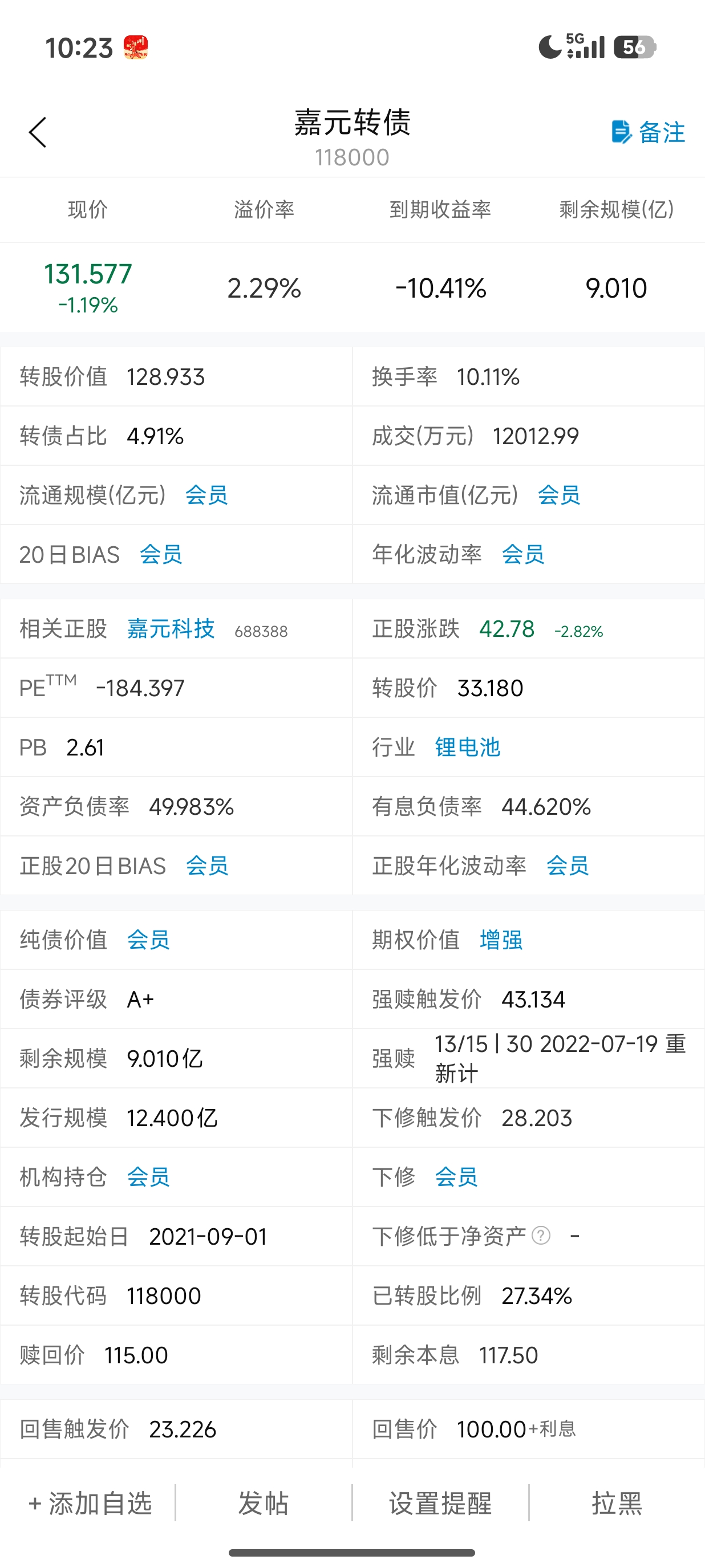 确实存在这个问题,但这个债还剩一年,公司应该不太敢拖了吧?总感觉强赎的可能比较大。赌他再拉一天,不恋战,看看能不能赚点小钱。嘉元转债价值也很高的,本月15日派息2.5元的股权登记日,春节后第一个交易日也就是24日派息2元到账(扣税20%等于扣税0.5元)