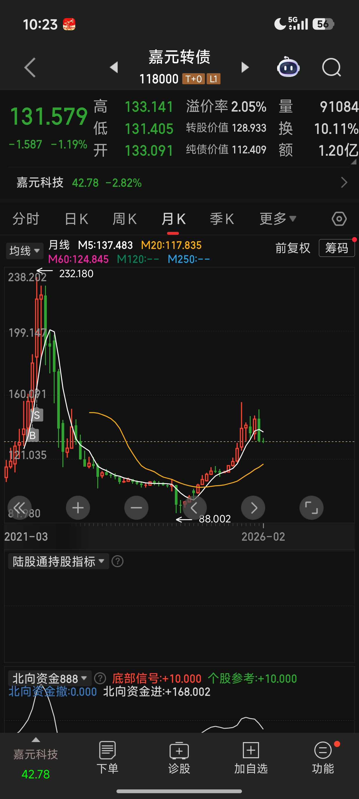 138买的转债,越跌越买,一点反弹都没有,目前已经送出去好几万,不知道你们收到了没有?收到了请在心里跟我说一声谢谢!你提前抢跑吃的大亏吧,131.5以下低吸没多少风险。