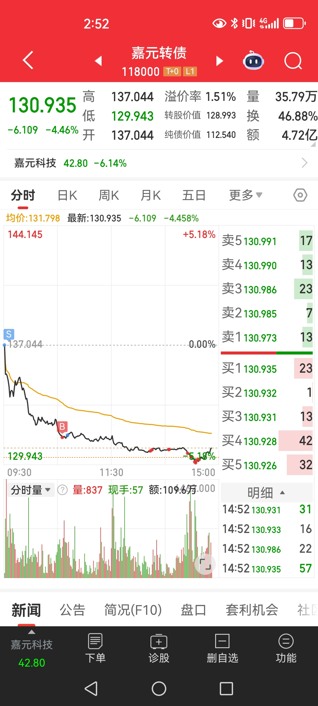 得感谢昨天那1.3亿利息都不要转股的把价格打下来了,过了今天再坚持7天就飞黄腾达了有人是不是有渠道可以拿到股票当天卖出,可以锁定当天的负溢价收益,第二天可以不计成本的抛售呢?好多票都是强赎回后一路向下,但是还是很多转股的呢