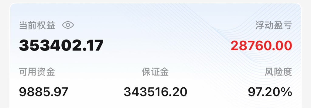 截至今天,目前权益如下图,实际权益需要-7000,因为春节交易所提保,临时转入了7000元