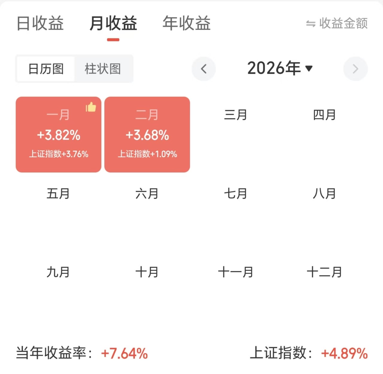 到2月末,今年收益率7.6%(含信用账户配债的收益大概8.1%),2月收益率3.7%,连续保持月度正收益,收益在最后一天创新高。