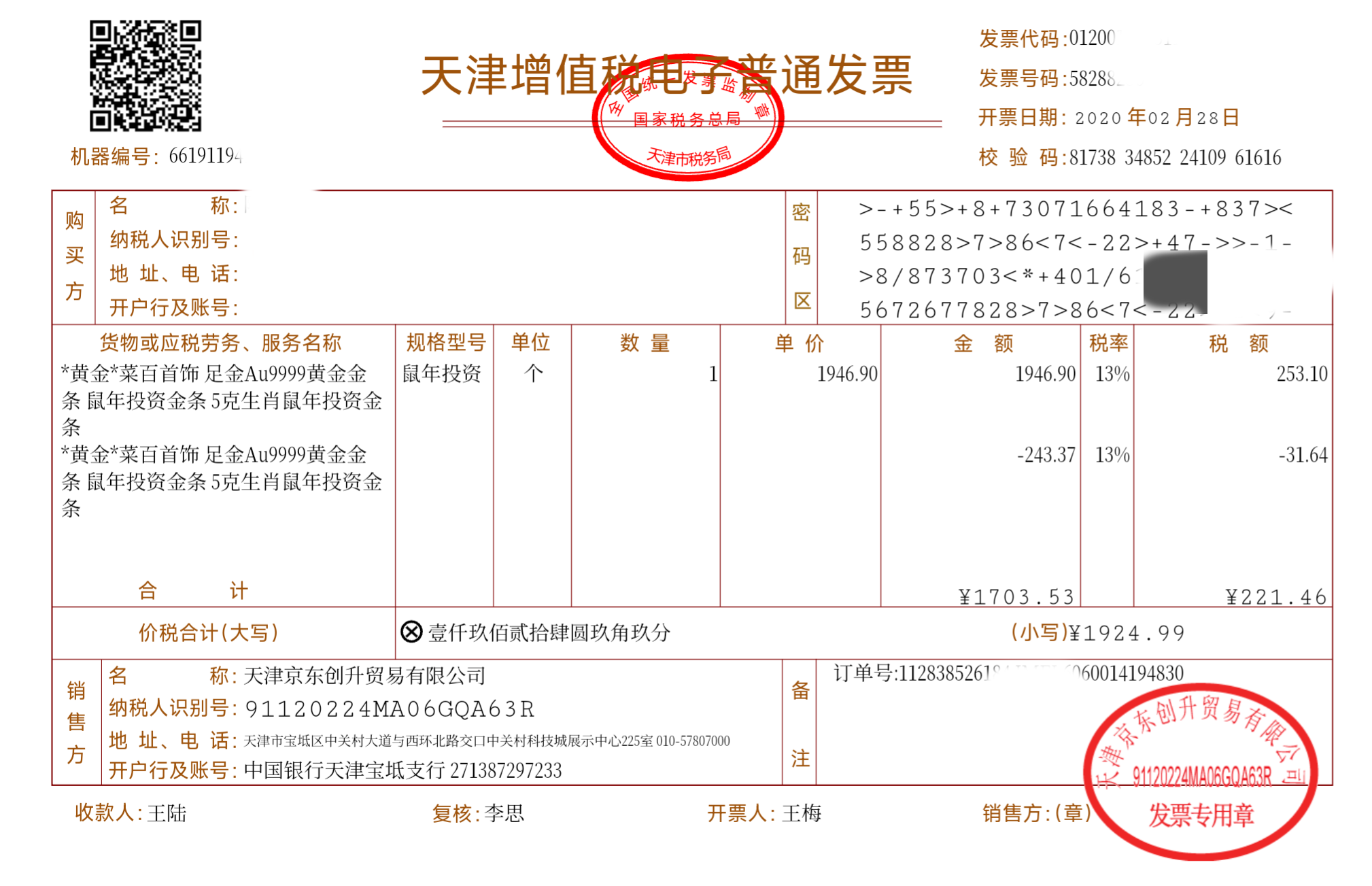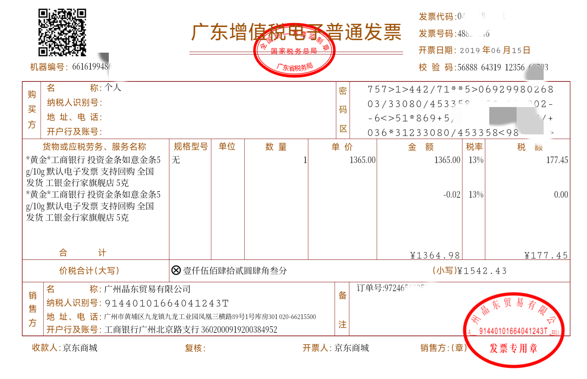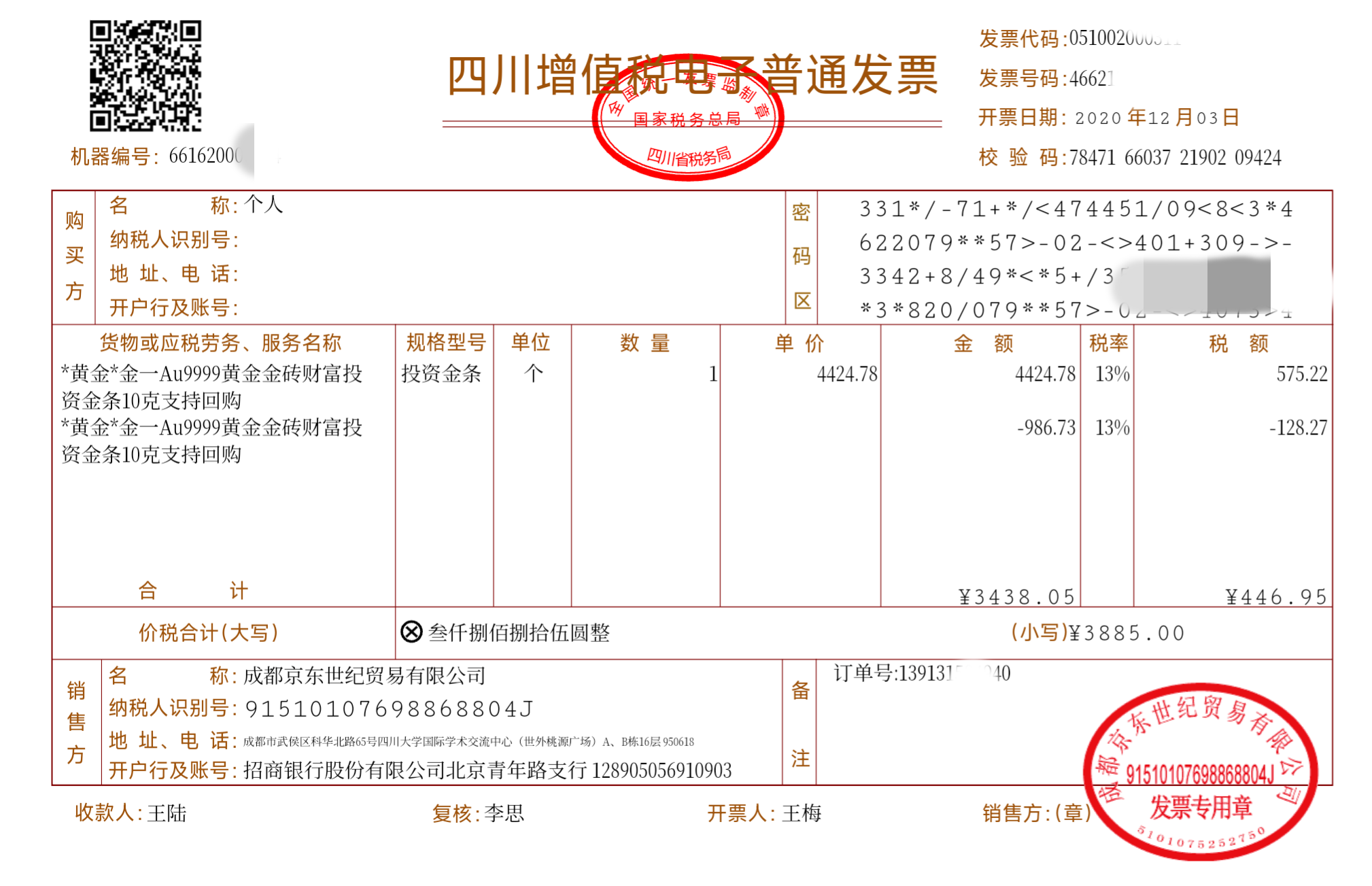 不过我印象中含税价格比基础金价也不会高13%那么多,