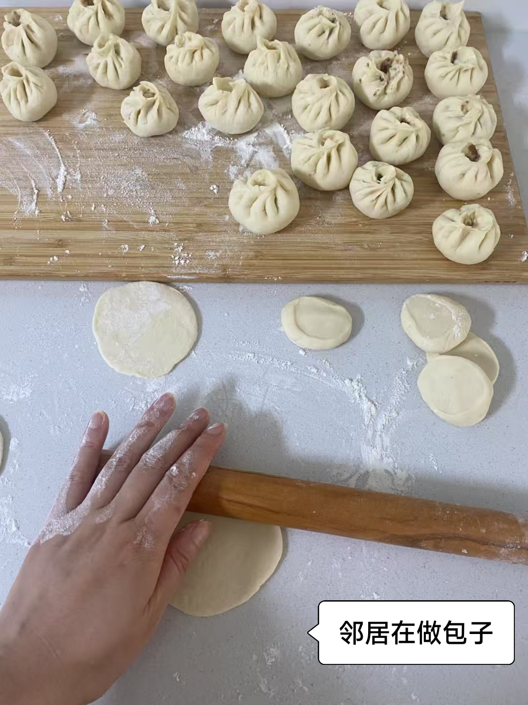 现在的邻居还挺心灵手巧的,会做包子,也请去试吃,