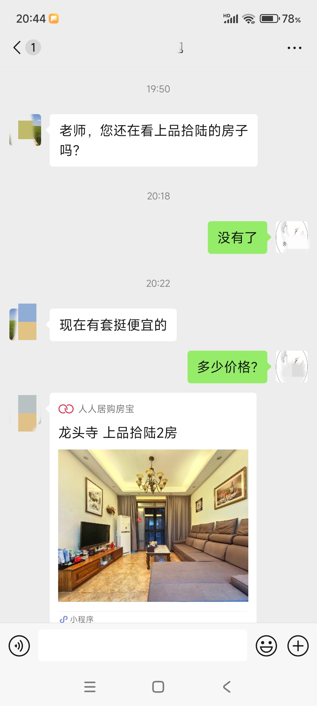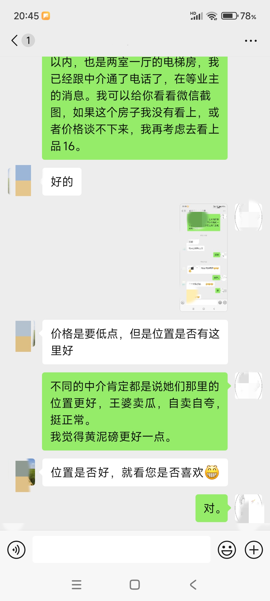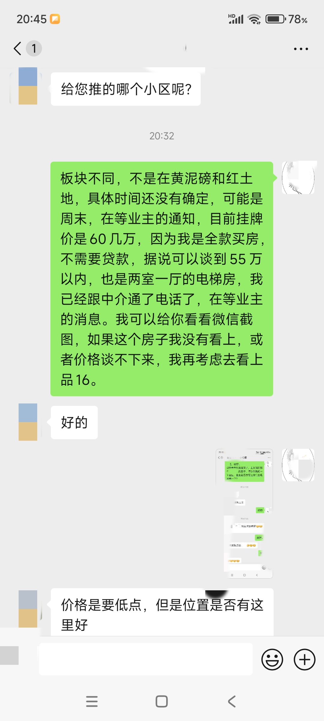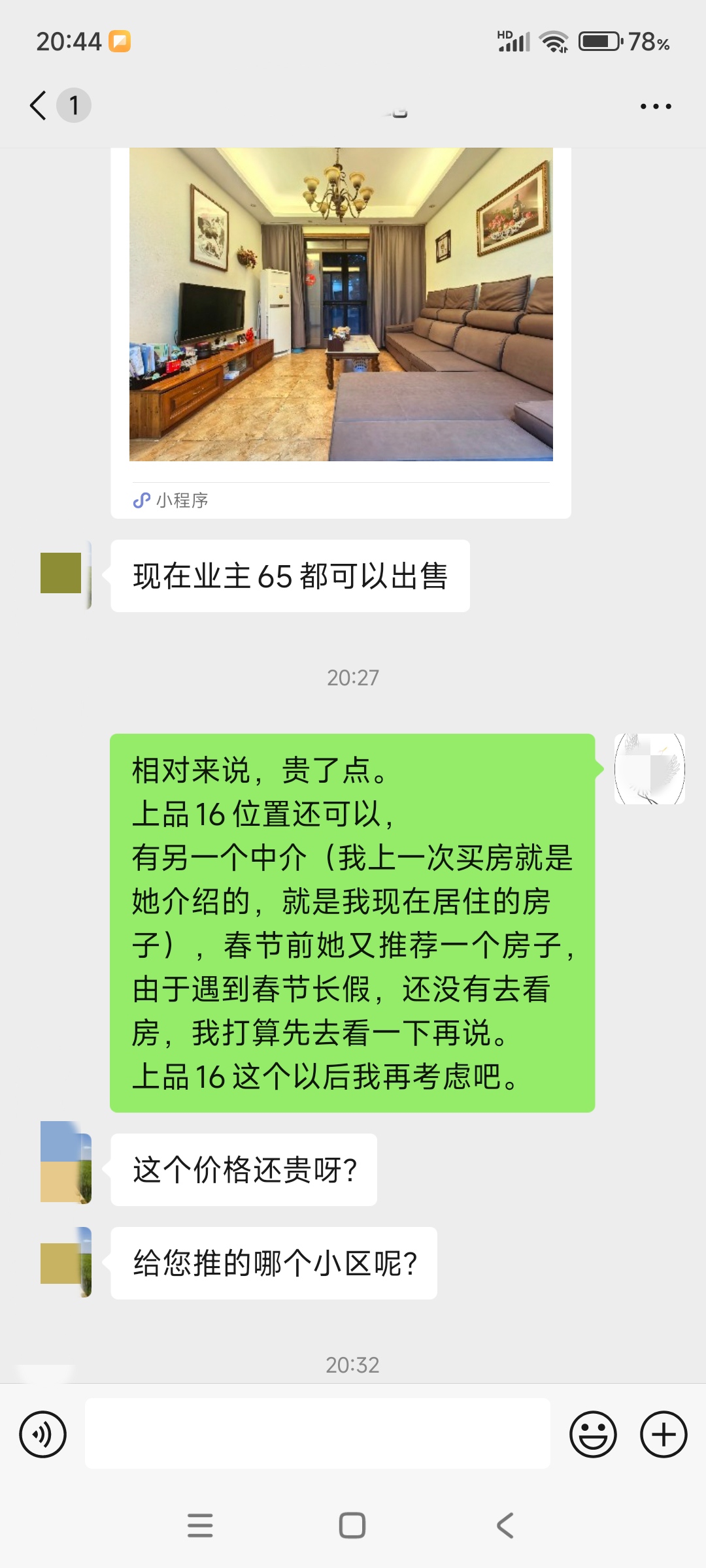 今天上午中介又微信通话联系我,下午还要看一个房,
