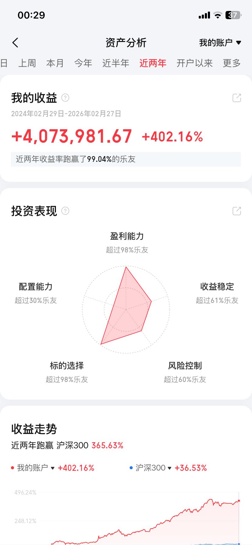 由于采用等额本金还款,每月还款额是递减的。3月底需提取约2814元,之后每月递减5元+。经测算,2026全年总提取额约为33300元,提取比例约占本金的8.2%。鉴于当前股、金市场估值均处于相对高位,我判断,今年整体投资收益要覆盖8.2%的提取成本难度较大。因此,我已将“可能需要部分本金来补充现金流”纳入了今年的预期之中。
