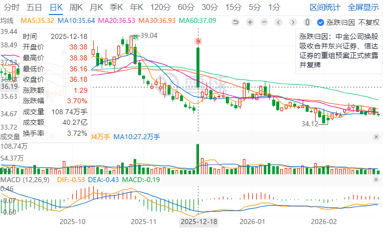 三家公司在2025年12月18月公布重组预案后,走势基本相同,均是冲高回落。目前中金、信达均跌到了现金选择权以下,东兴证券目前选择权溢价6.32%。目前公告显示尚需各方董事会再次审议,再提交股东会批准。
