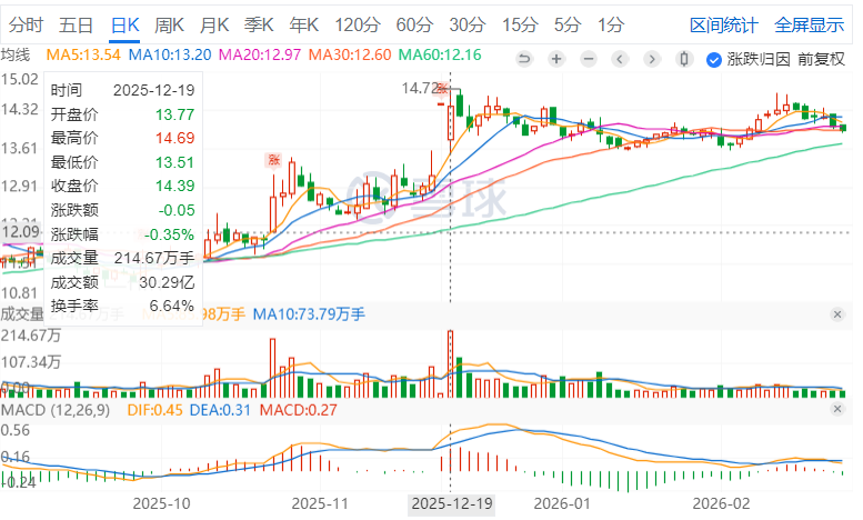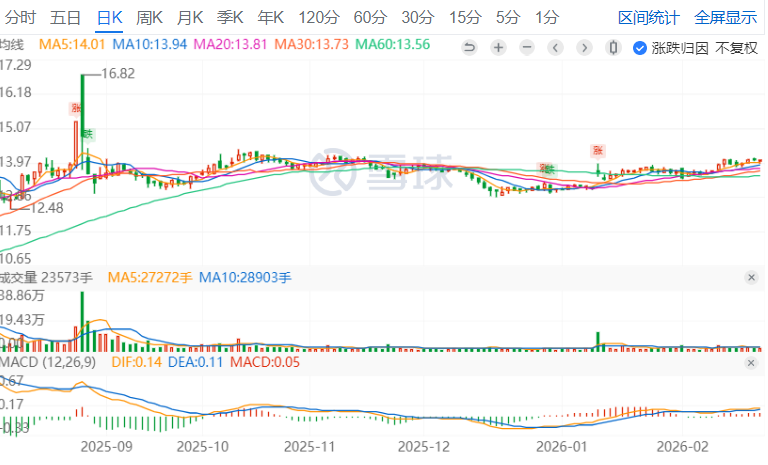 镇洋发展2025年9月公布重组预案后,当天涨到16.82元,不过没多长时间就跌到了现金选择权以下,之后价格一直在14.42-12.89间上下浮动。2026年2月发布公告,将在3.20日召开股东会。