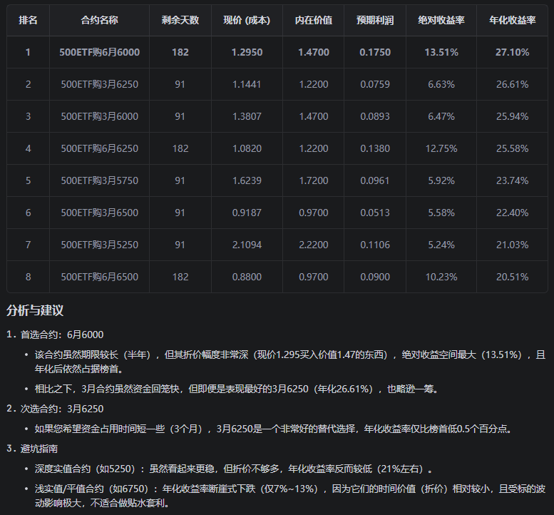 - 融券困难 :要锁定这个“无风险收益”,理论上需要: 买入实值认购期权 融券做空500ETF 。