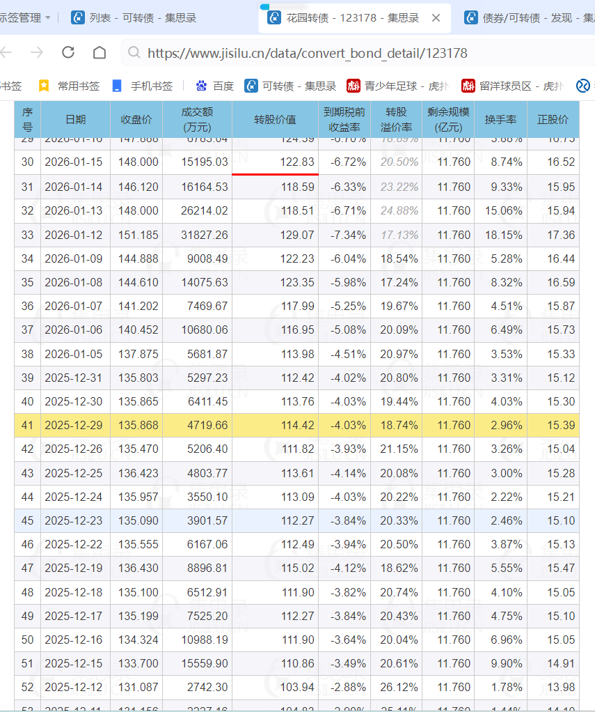 今日转股价值114.57和历史溢价率12月29日的114.42接近,和当日转债价格也接近不过今日有个一元派息。
